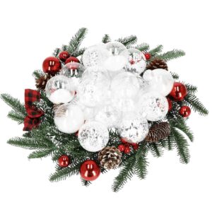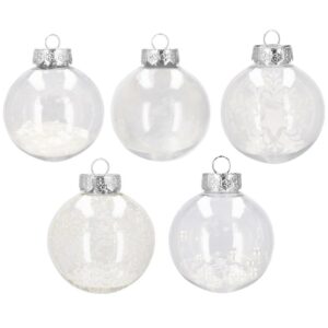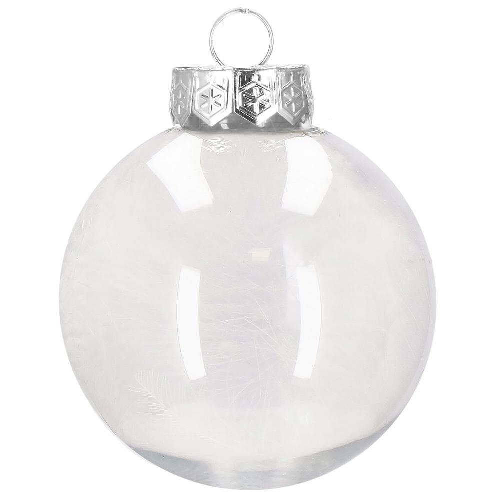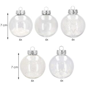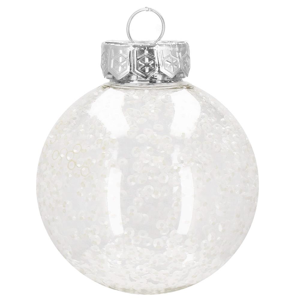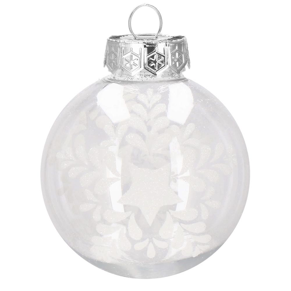 Set globuri de Craciun Inedit, 30 bucati, 7cm, transparente si alb