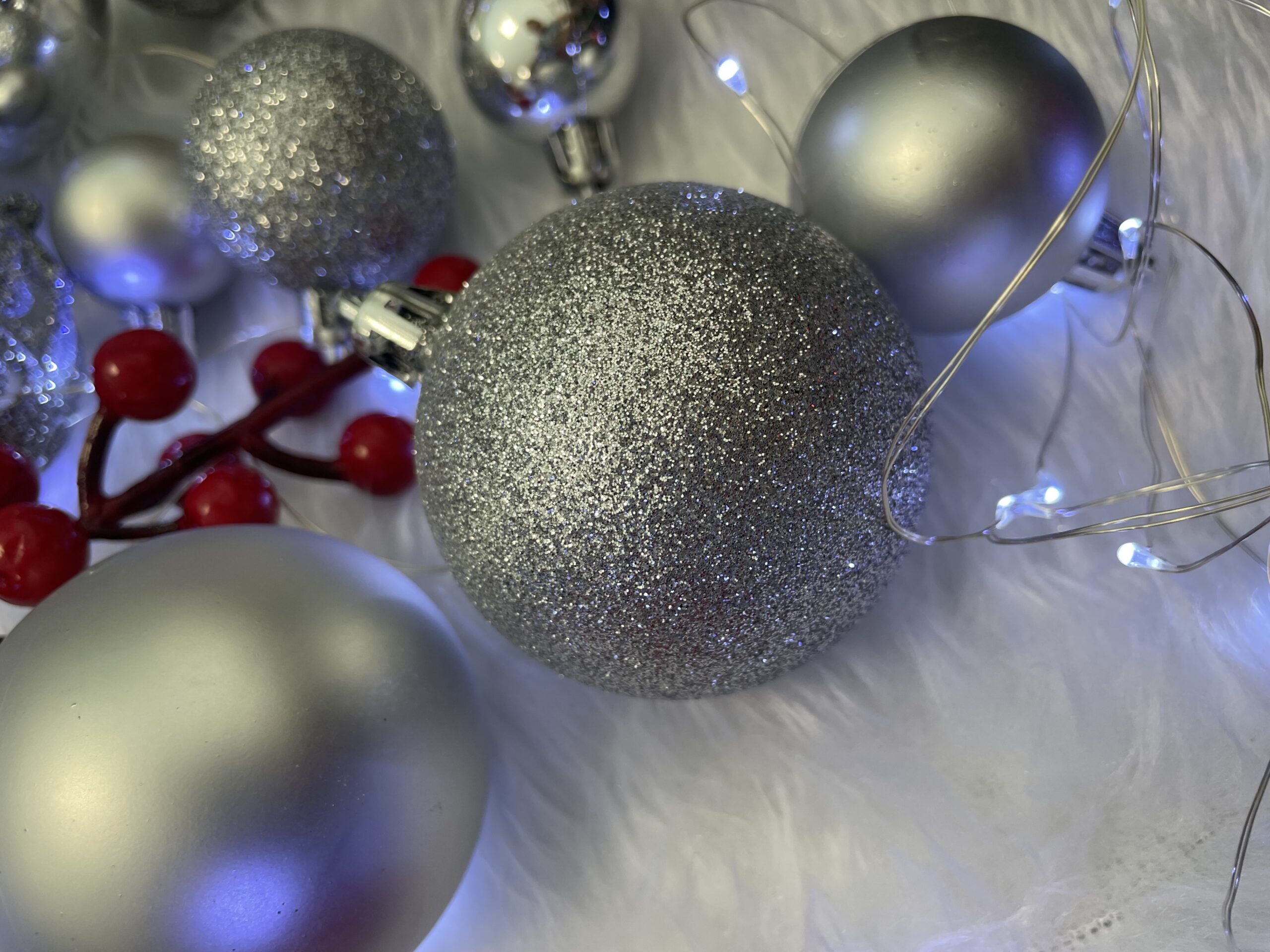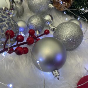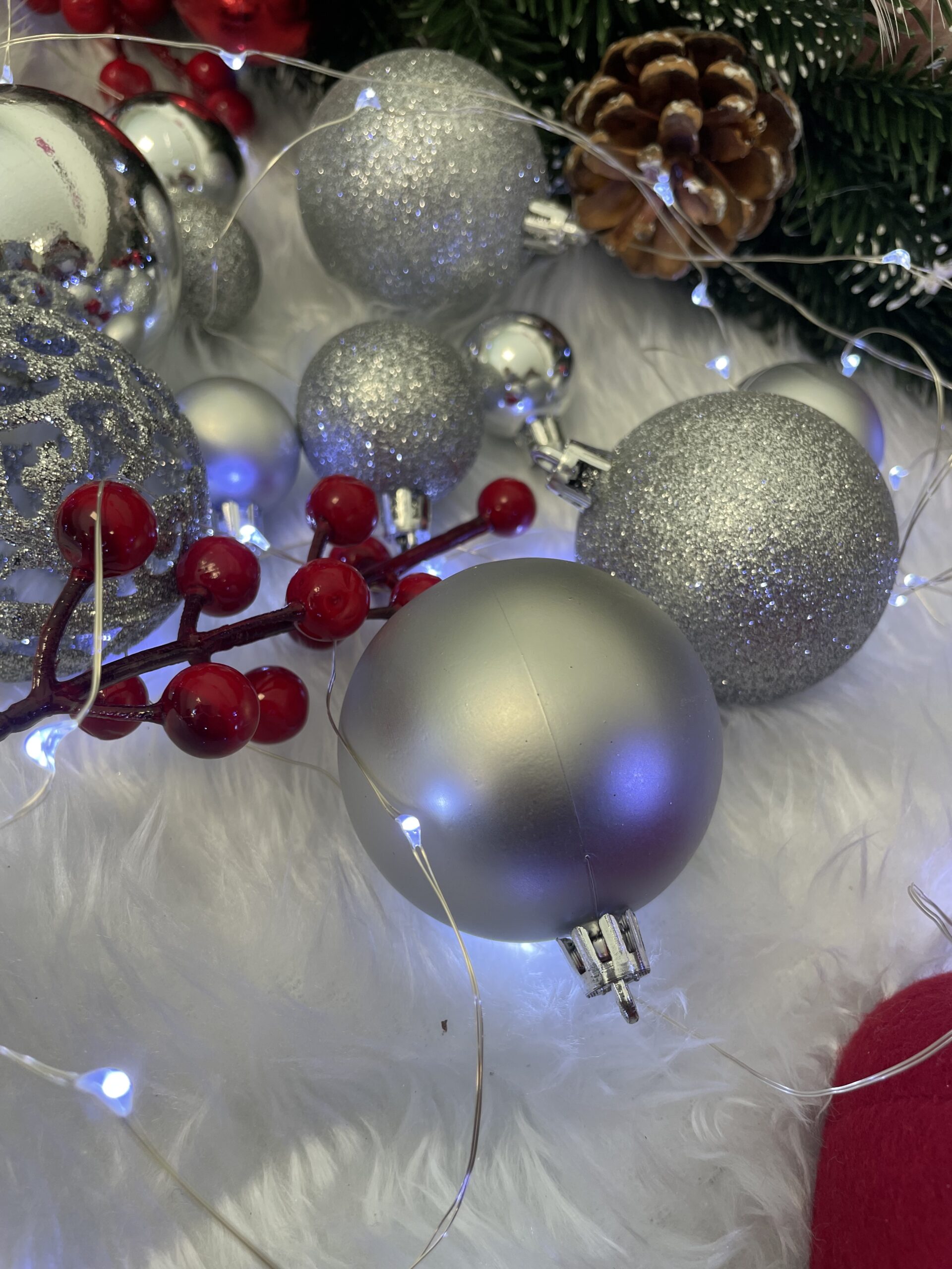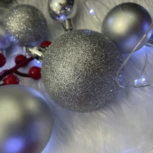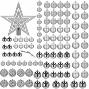Set globuri si decoratiuni de Craciun, 100 piese, diverse dimensiuni cu stea, argintiu
