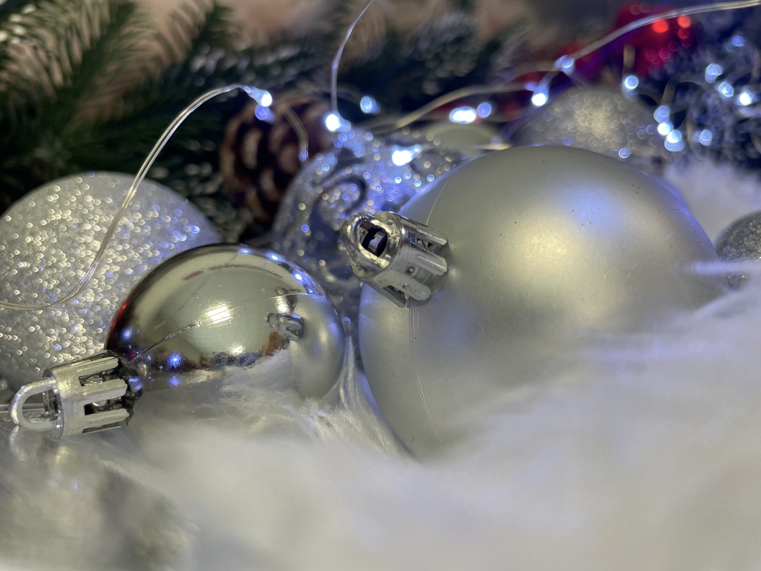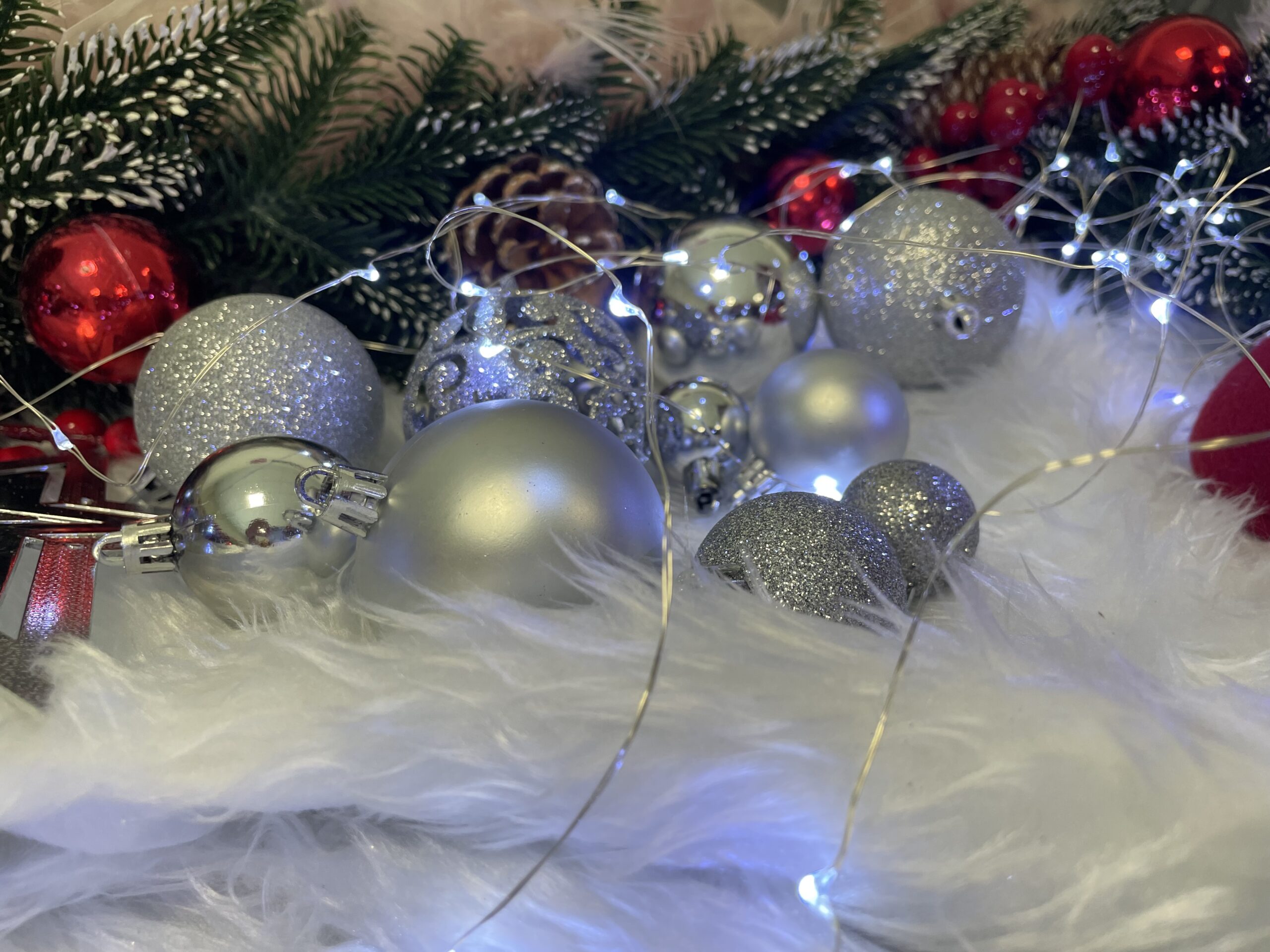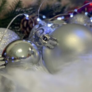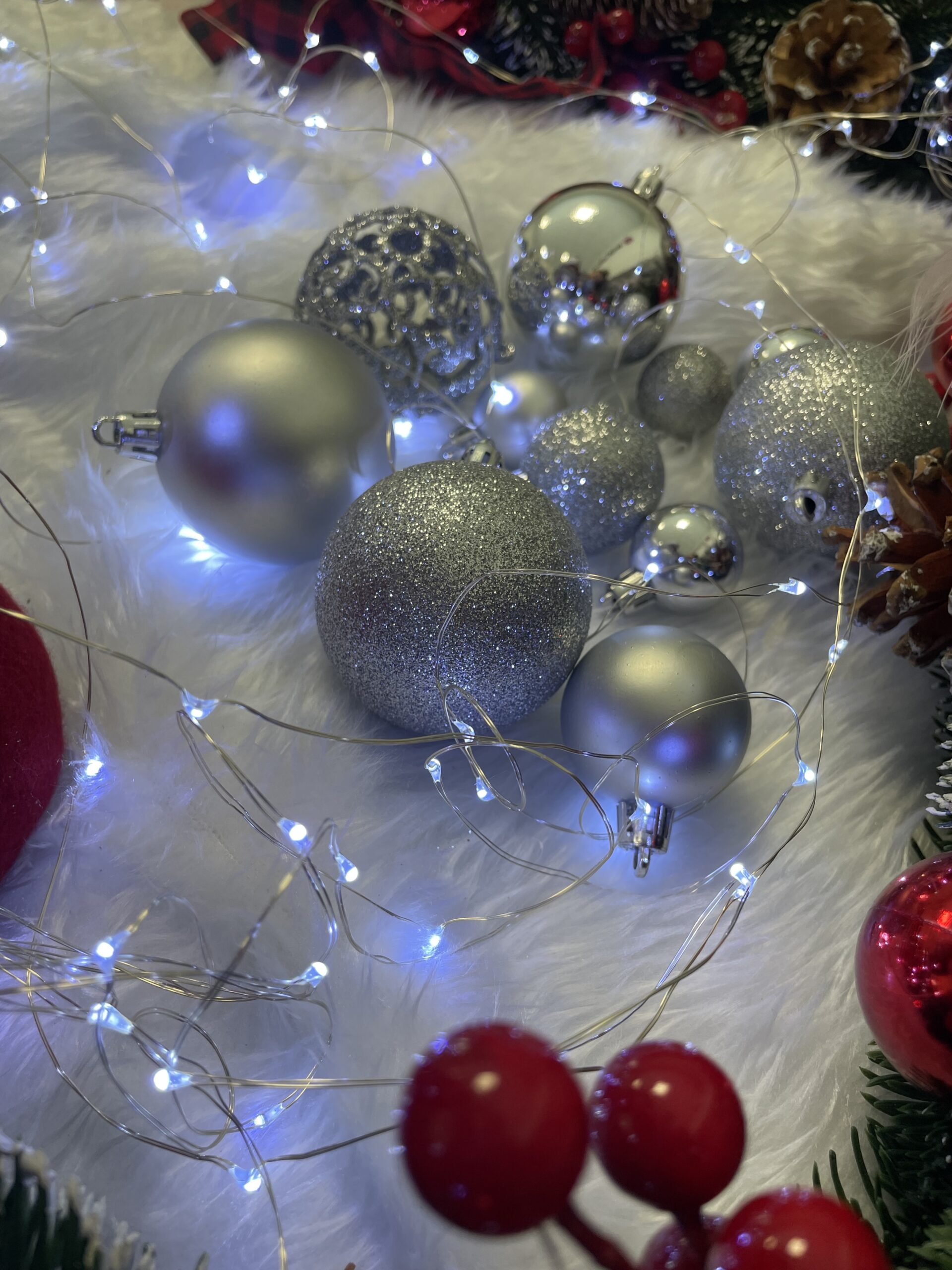 Set globuri si decoratiuni de Craciun, 100 piese, diverse dimensiuni cu stea, argintiu