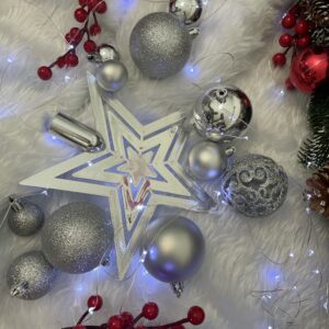 „Set globuri si decoratiuni de Craciun, 100 piese, diverse dimensiuni cu stea, argintiu” értékelése elsőként