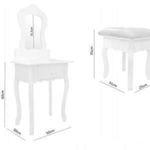 - Dimensiunile masutei de toaleta: 50 x 30 x 110 cm