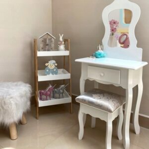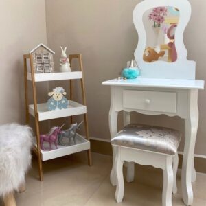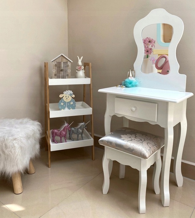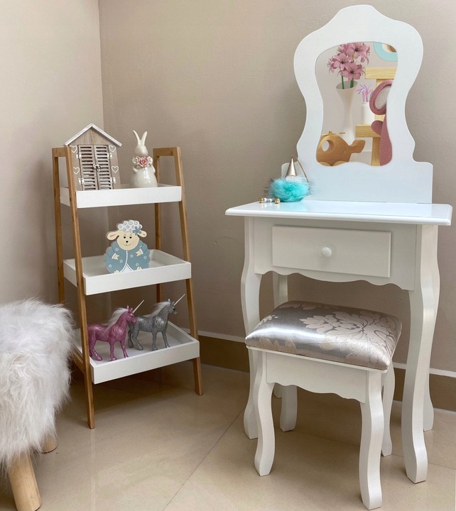Viseaza si micuta ta la propria masuta de toaleta? Masuta noastra de toaleta pentru fete este solutia perfecta pentru micile printese. Cu siguranta va satisface cerintele celor mai exigente domnisoare. Ideal pentru camera unui copil. De asemenea, ca un decor interesant. Masuta de toaleta va fi cu siguranta pe placul oricarei fetite care adora sa se imbrace si sa-si imite mama atunci cand se machiaza.