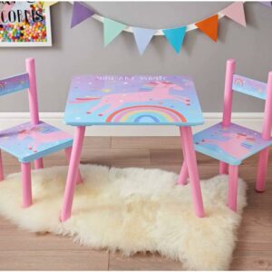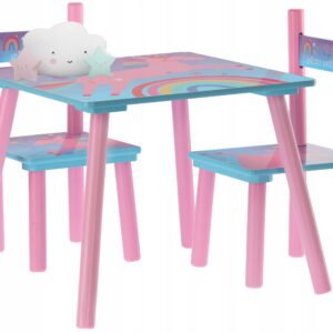 O masa alba din lemn masiv este piesa de mobilier perfecta pentru orice copil. Masa se va dovedi a fi un loc in care vor fi lucrate creatiile uimitoare ale micutului tau. La aceasta masa va incepe sa isi dezvolte creativitatea. Setul include doua scaune cu spatar. Picioarele sunt din lemn de pin, iar scaunul este din MDF. Dimensiunile setului sunt ideale pentru copiii cu varsta de aproximativ 3 ani.