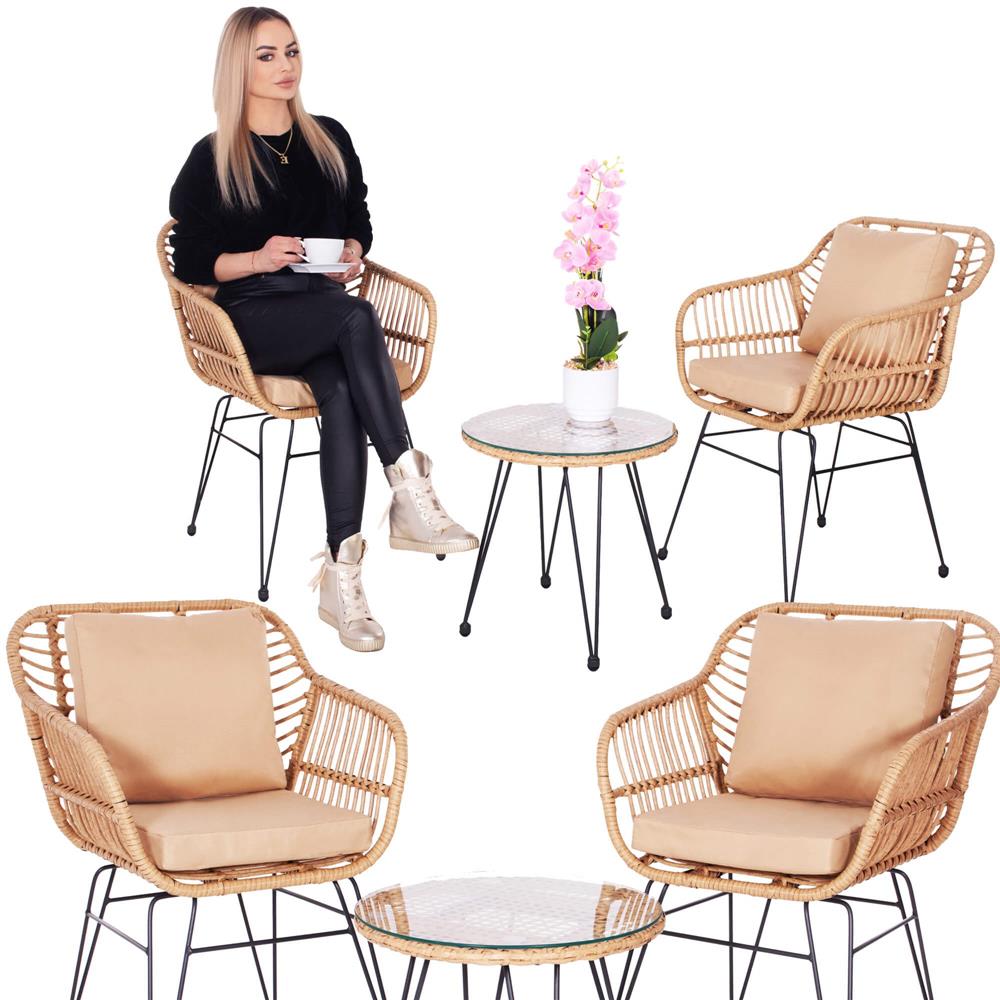 - Anyaga: techno rattan, edzett üveg, fém, poliészter/PP hab