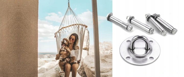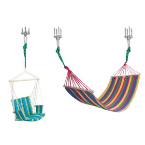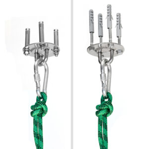 Set de montare universal pentru fixarea hamacelor, sezlongurilor, balansoarelor, a sacilor de box, a benzilor de exercitii si a multor alte dispozitive. Asigura o fixare stabila si astfel – siguranta in timpul utilizarii.
