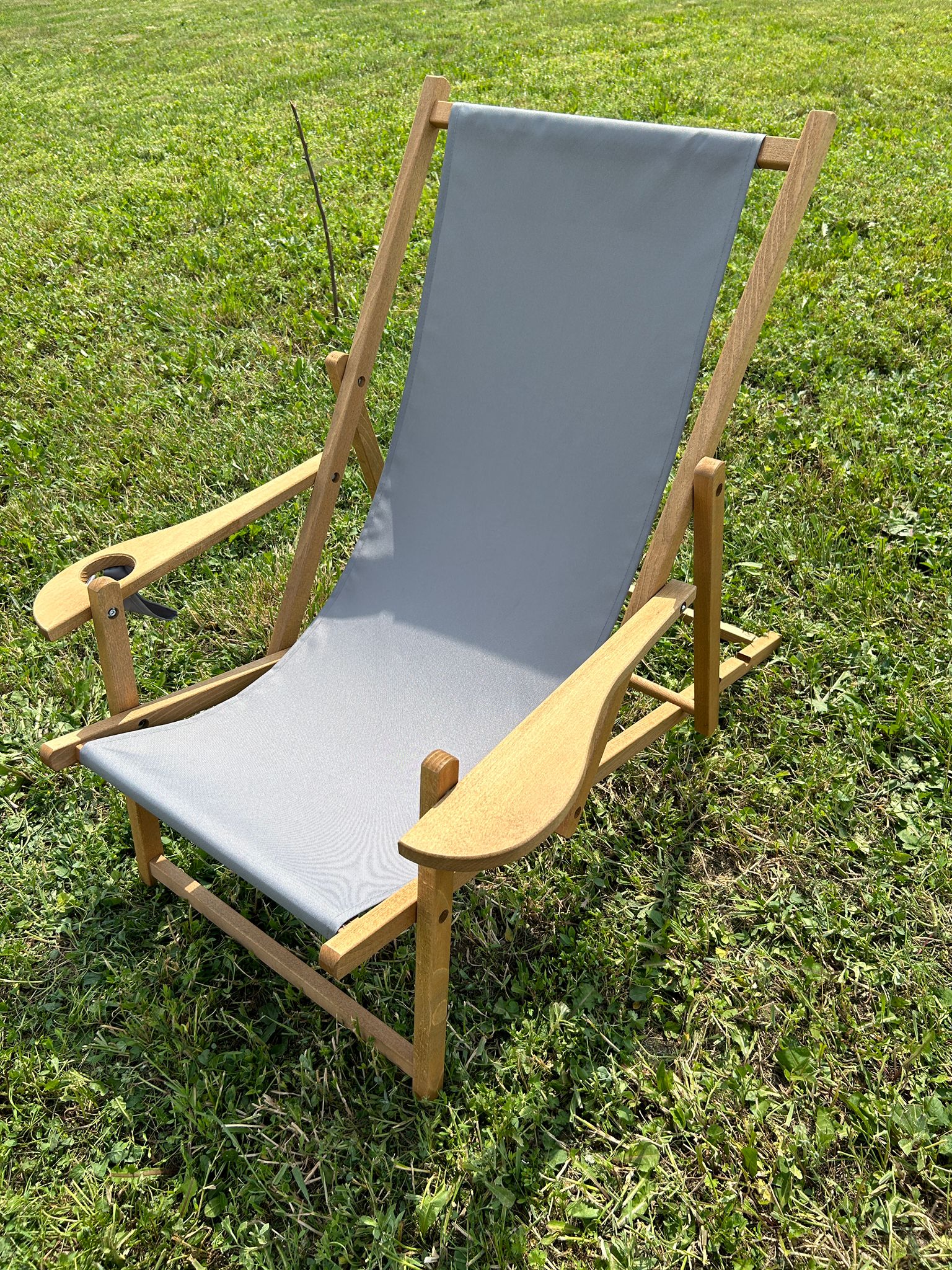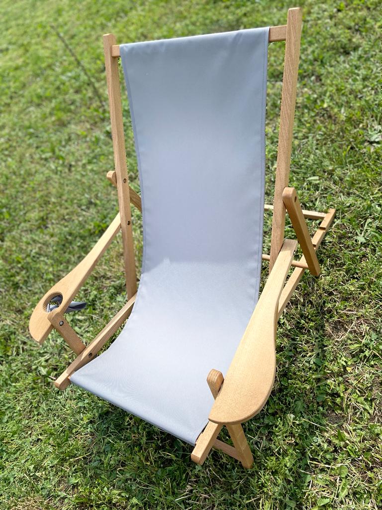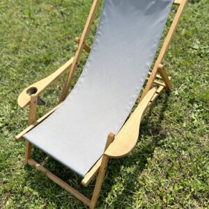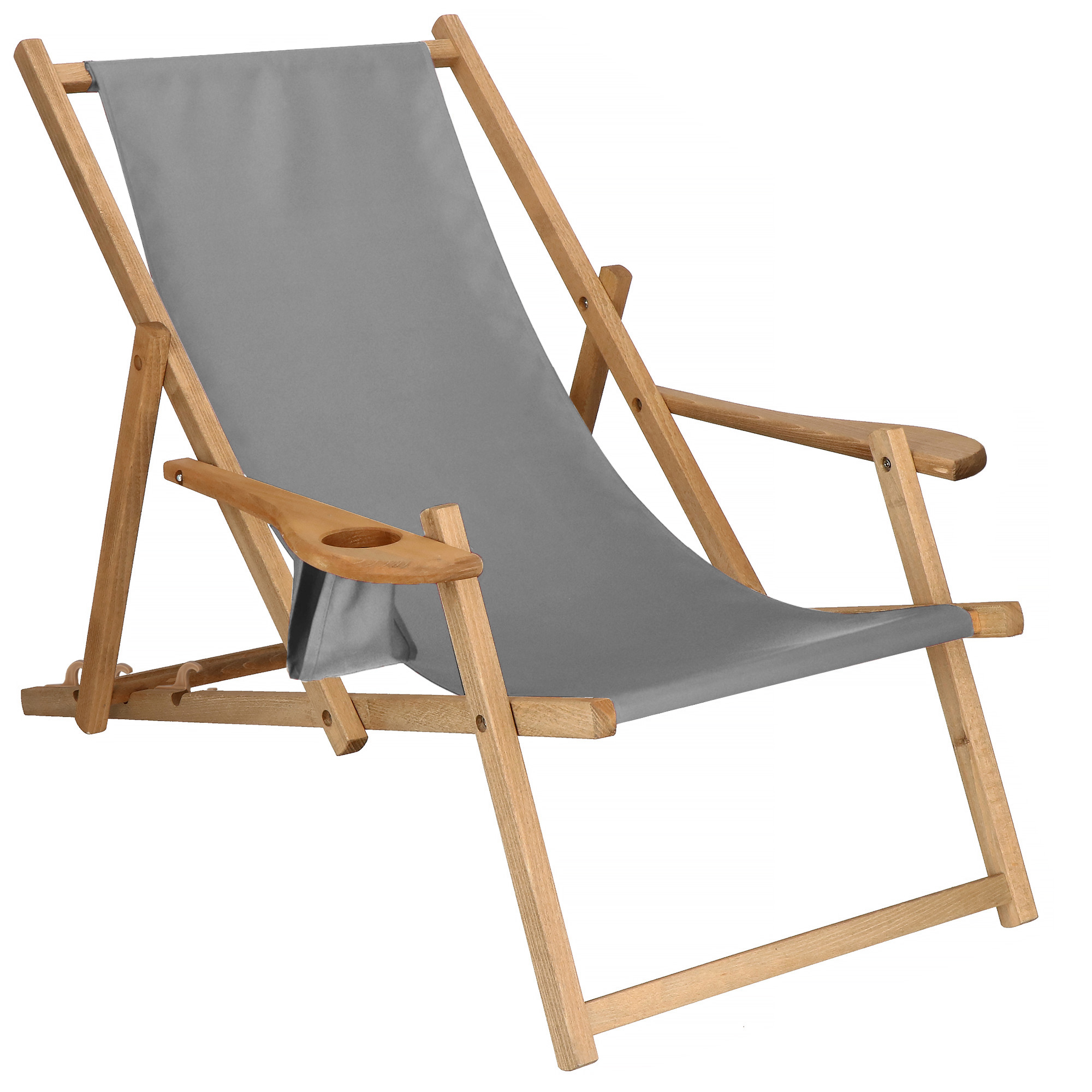 (DL) Sezlong cu suport pahar pliabil din lemn de fag impregnat SERSIMO, 120kg, gri deschis