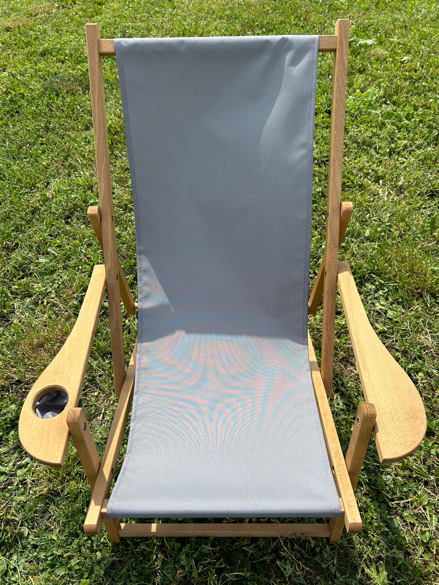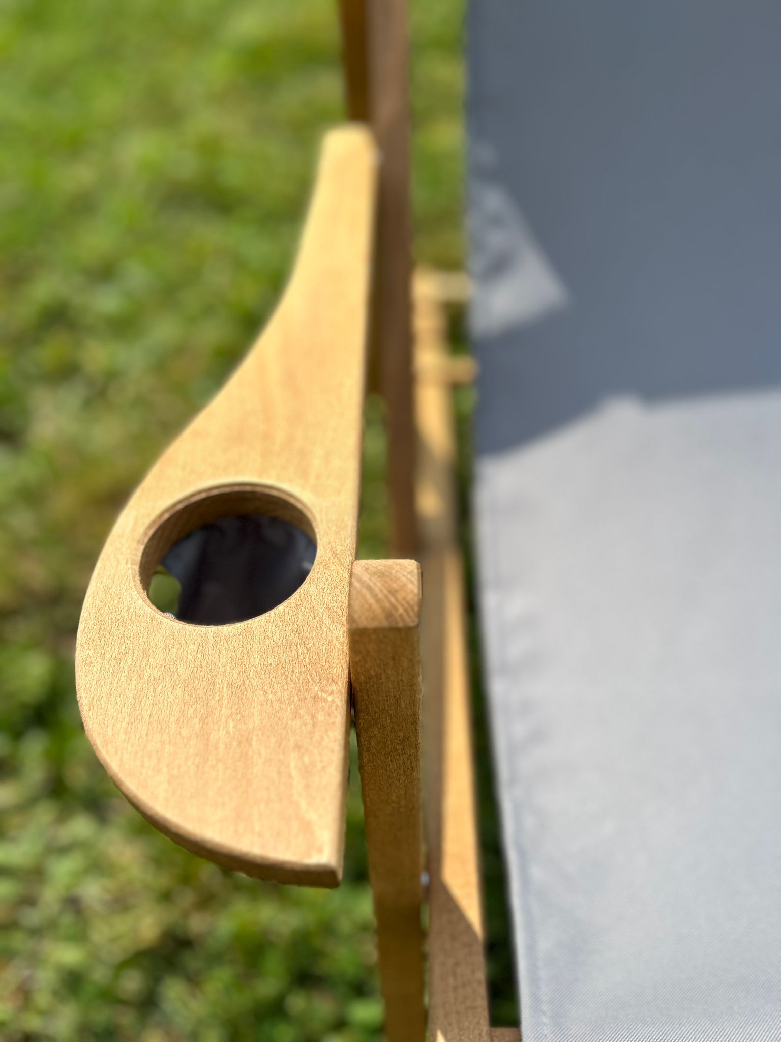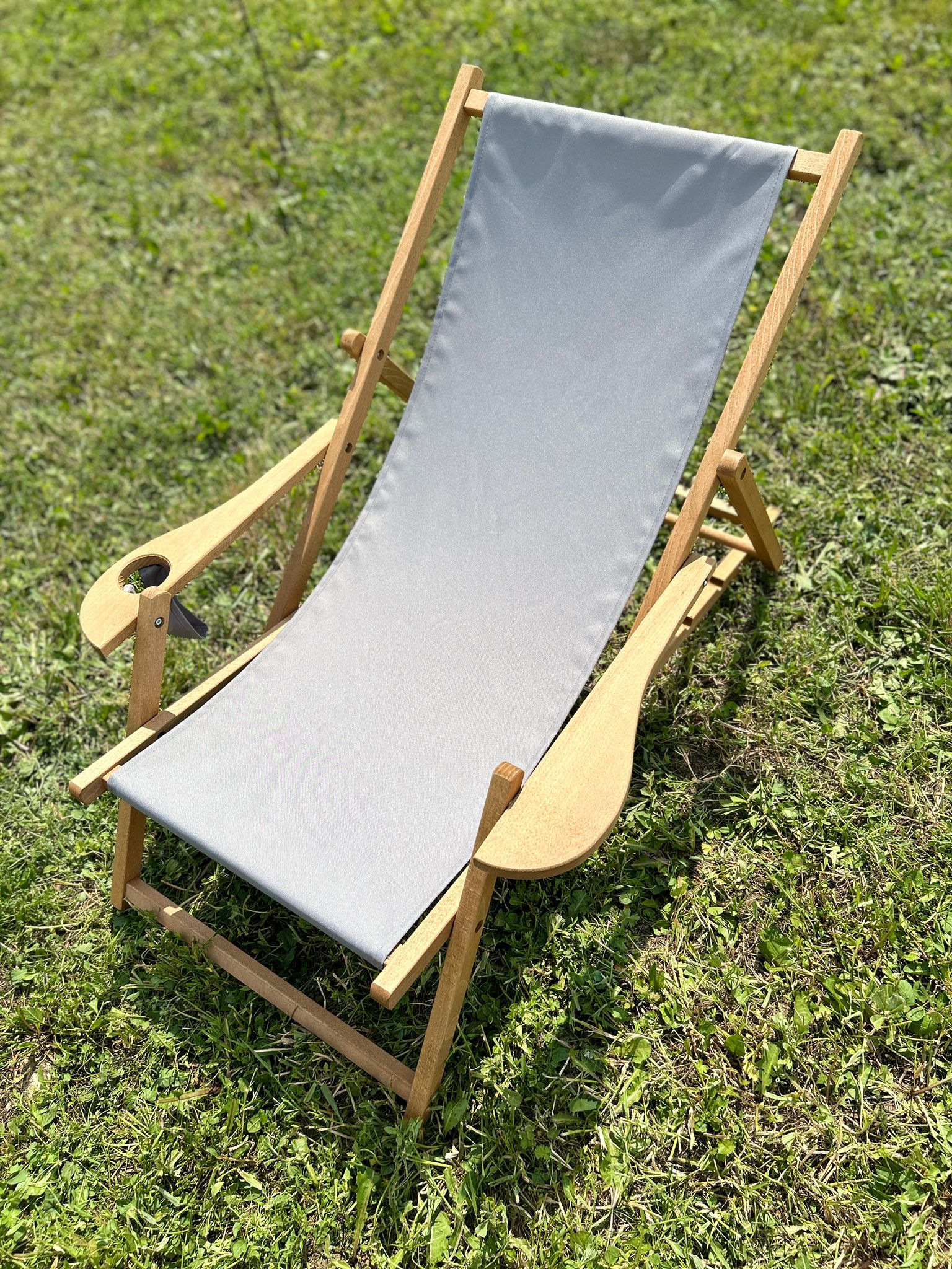 (DL) Sezlong cu suport pahar pliabil din lemn de fag impregnat SERSIMO, 120kg, gri deschis