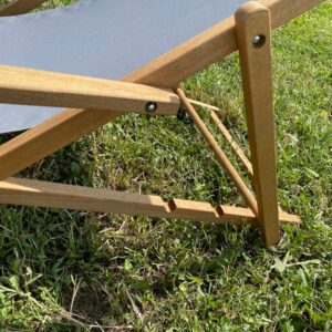 Scaunul este alcatuit dintr-un cadru robust din lemn impregnat si o suprafata de sedere de inalta calitate, rezistenta la intemperii. In plus, scaunul de plaja are suport pentru brate si poate fi ajustat in 3 setari de inclinare, pentru un confort optim. Acest sezlong pentru exterior poate fi pliat pentru a fi usor de transportat si depozitat, atunci cand nu este utilizat. De asemenea dispune si de un suport pentru pahar sau sticla.