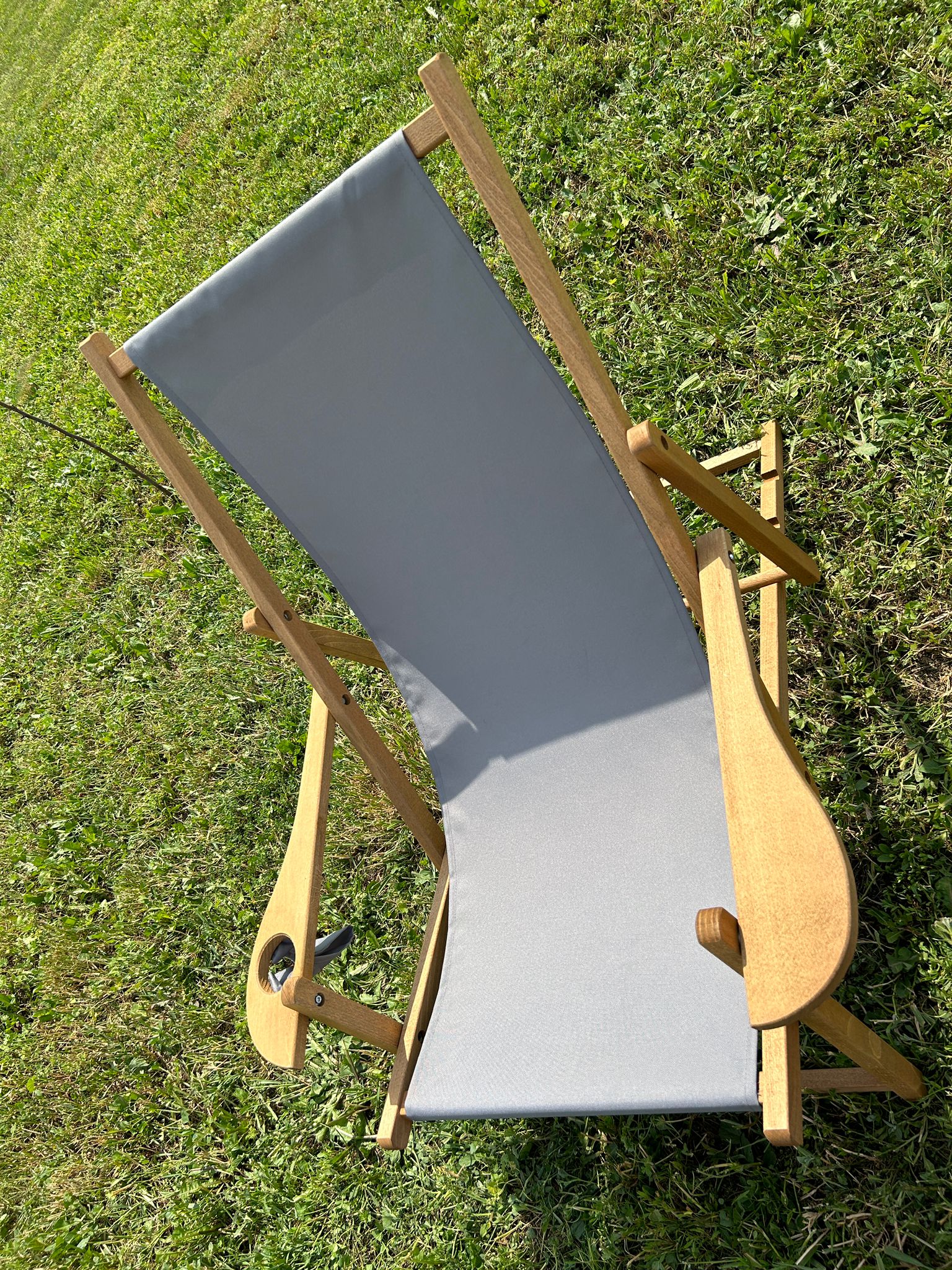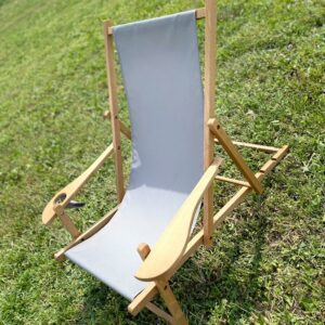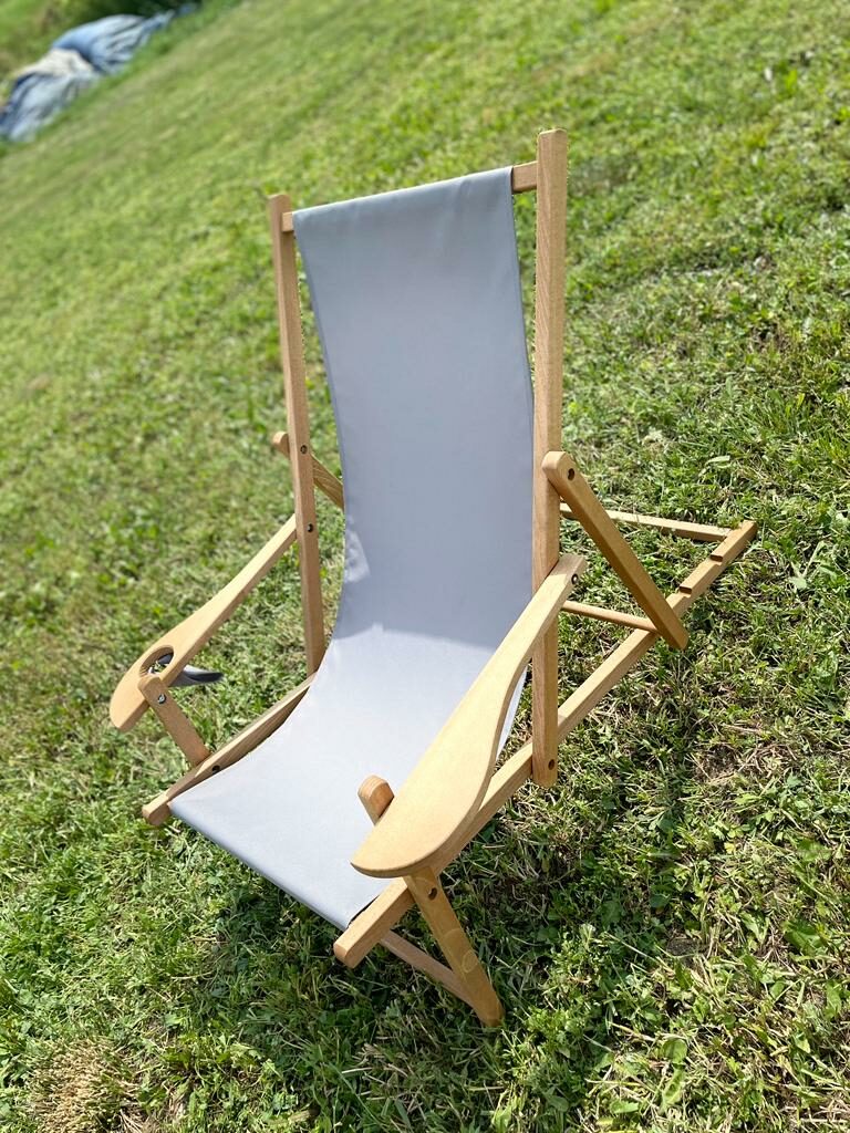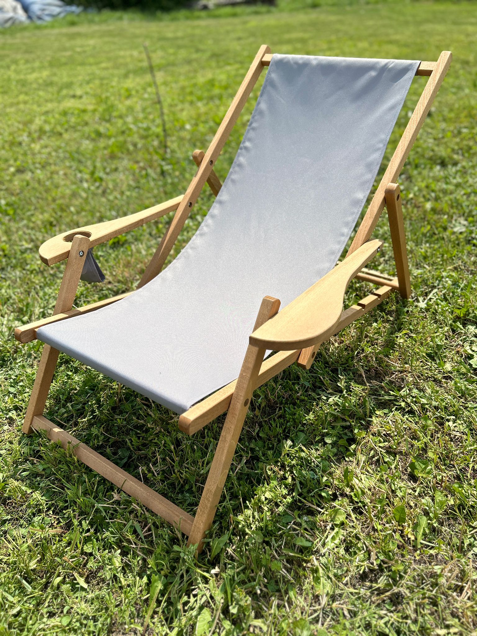 „(DL) Sezlong cu suport pahar pliabil din lemn de fag impregnat SERSIMO, 120kg, gri deschis” értékelése elsőként