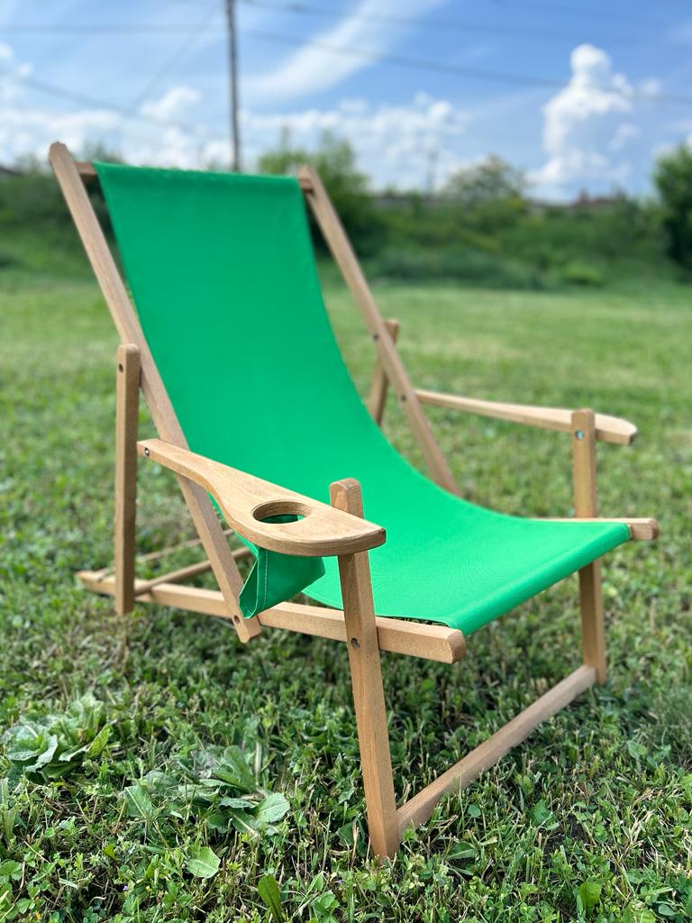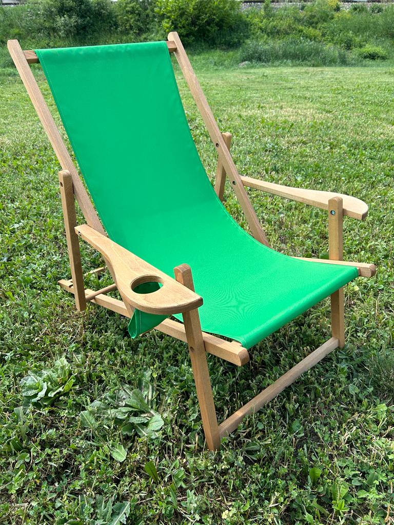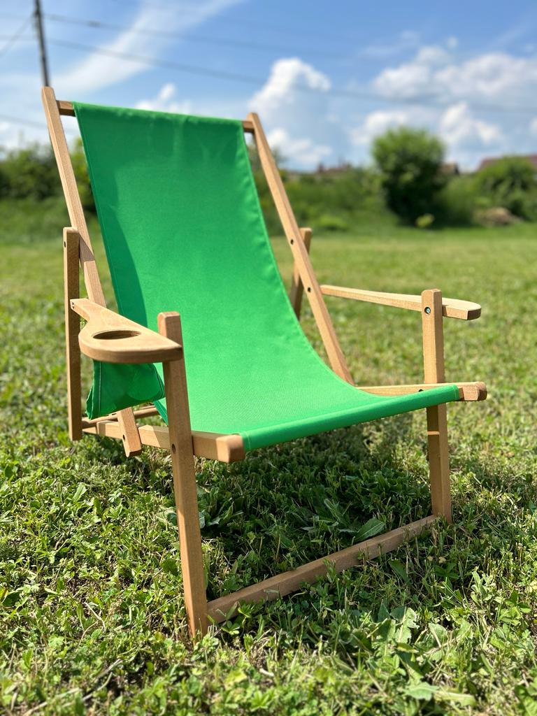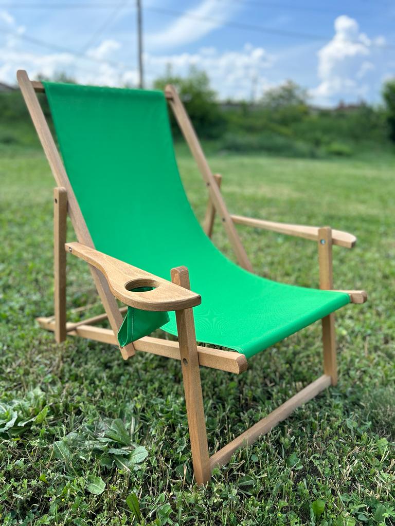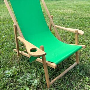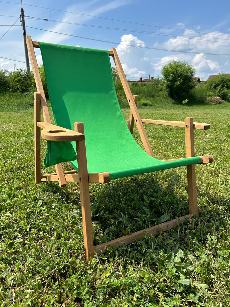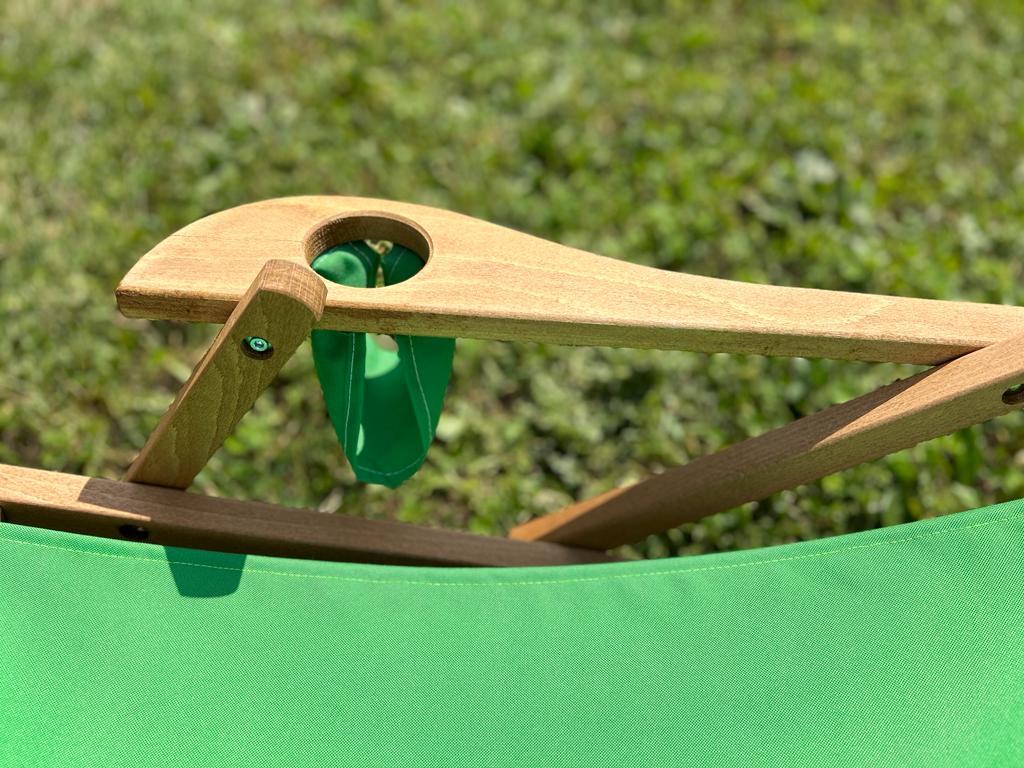 (DL) SERSIMO-impregnált bükkfa összecsukható nyugágy pohártartóval, 120kg, zöld