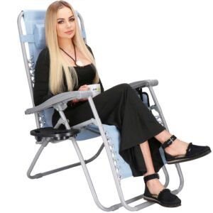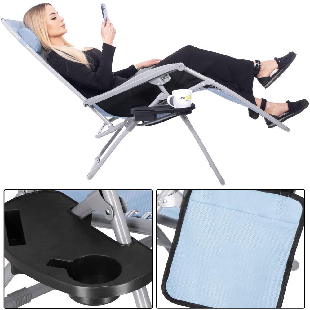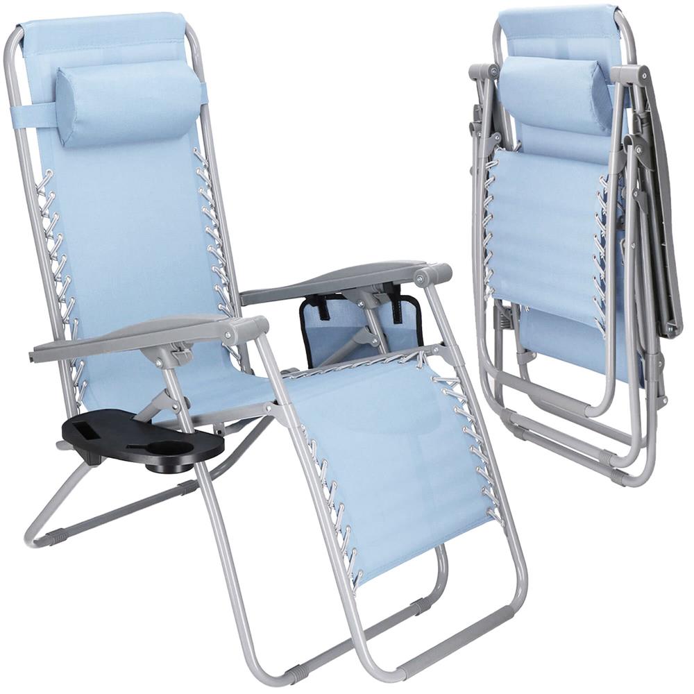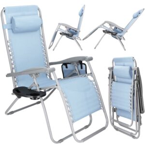 Strand vagy kerti összecsukható szék, Siesta, nulla gravitáció, fejtámlával, világoskék