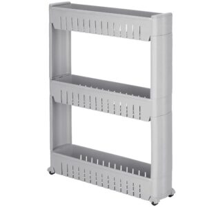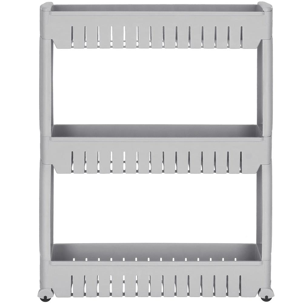 Sistem rafturi de depozitare cu roti pentru bucatarie sau baie cu 3 polite, 54x13x70cm, gri