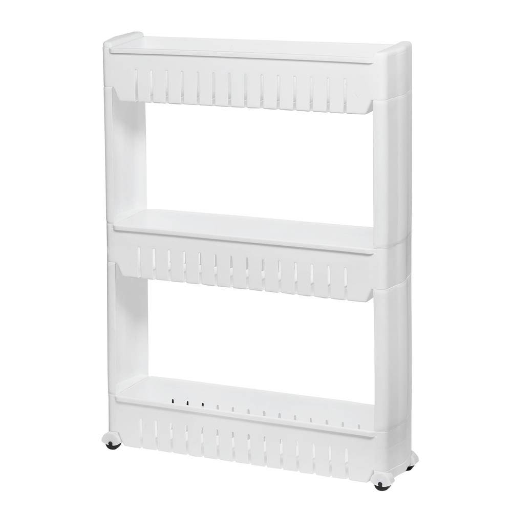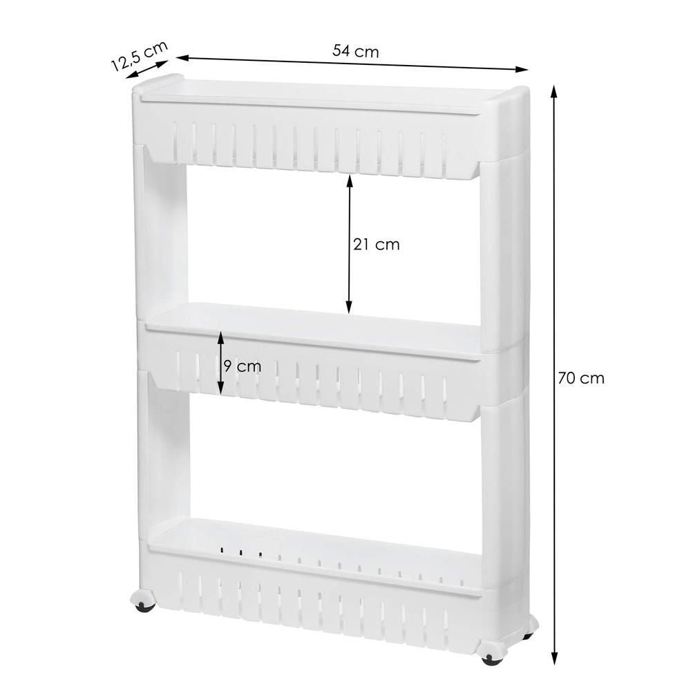 Sistem rafturi de depozitare Sersimo HA110 cu roti pentru bucatarie sau baie cu 3 polite, alb