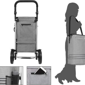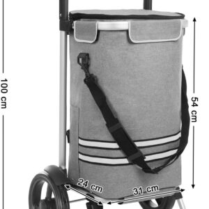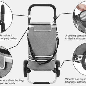 Rugalmas kialakítás: Az állítható fogantyúnak köszönhetően a bevásárlókocsi húzásra vagy tolásra is alkalmas és a különböző testméretekhez is alkalmazkodik. A táska kivehető és külön is használható, vállpánttal könnyedén hordhatja.