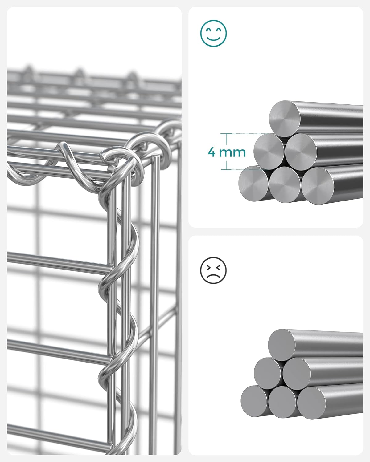 Realizat din otel galvanizat cu diametrul de 4 mm, acest cos gabion este solid, rezistent la rugina si coroziune pentru a va impodobi gradina sezon dupa sezon.