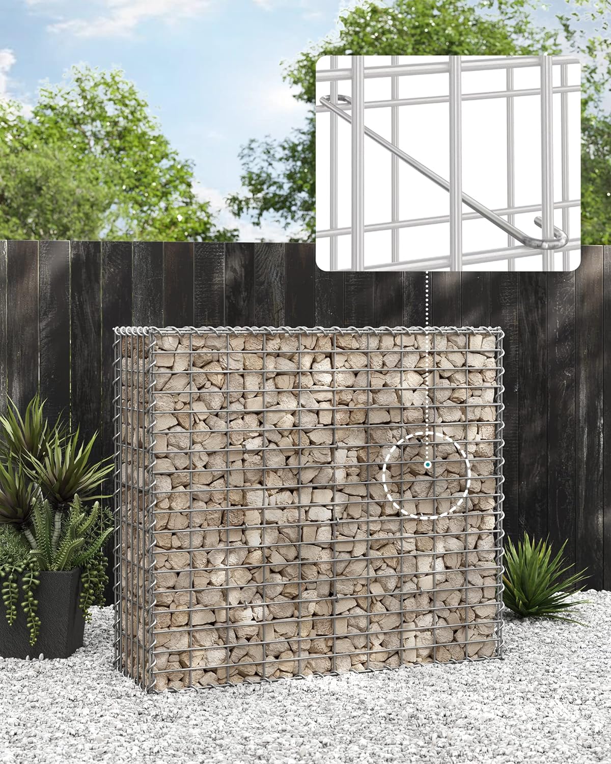 In functie de nevoile dvs. sau de dispunerea spatiului, puteti folosi gabionul singur sau puteti combina mai multe impreuna pentru a le folosi ca un ghiveci, o banca, o treapta de piatra sau un stalp in gradina dvs.