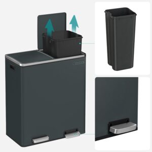 SONGMICS Rozsdamentes szemetes 2 rekeszes szelektív gyűjtéssel, belső vödrökkel, 2x30 literes, sötétszürke