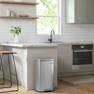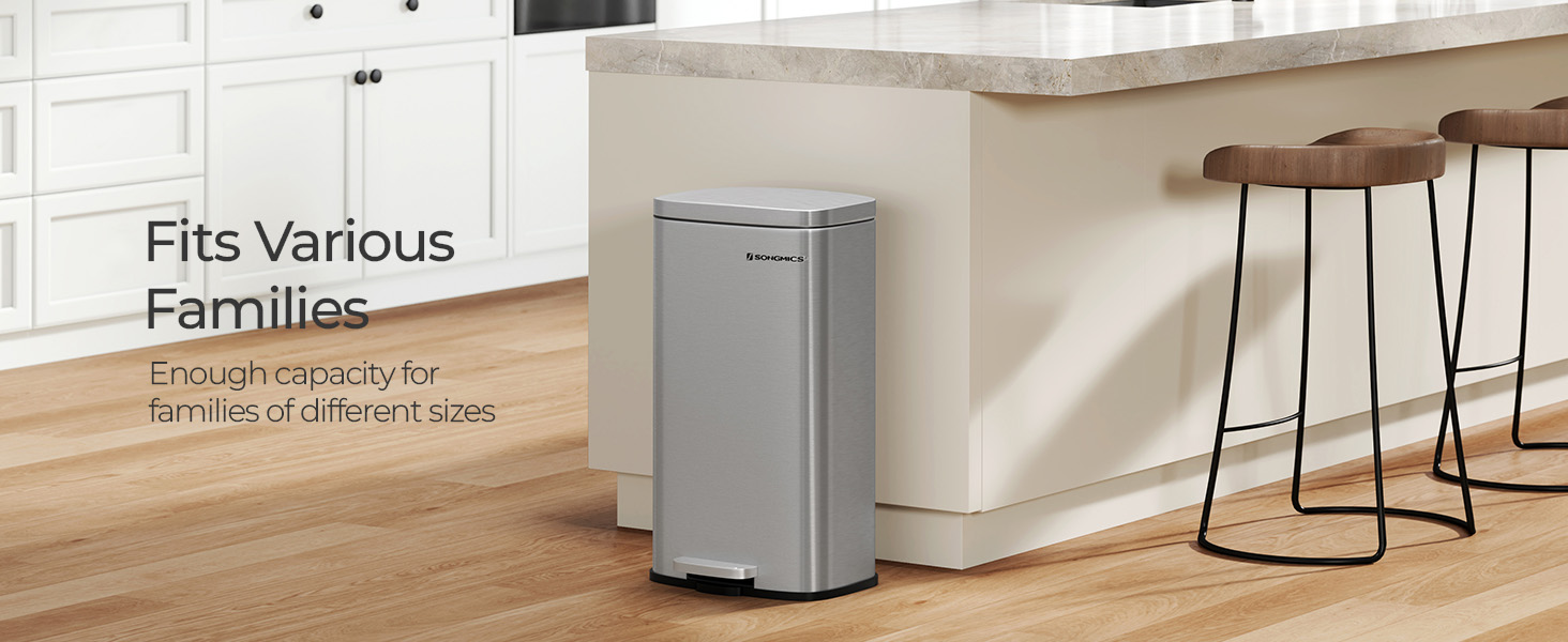 30 literes űrtartalmával és 34,8 x 29,7 x 63,3 cm-es méretével ez a szemetes sok helyet kínál anélkül, hogy túlzsúfolná a helyiséget. Modern dizájnja számos belső kialakításhoz illeszkedik.