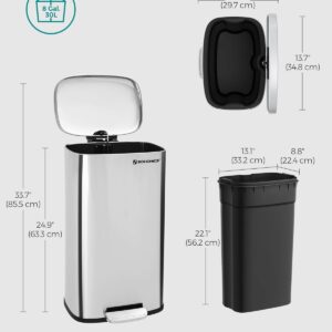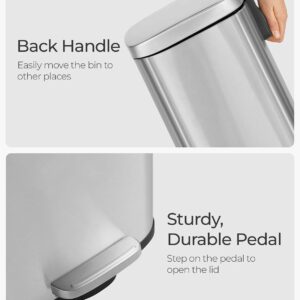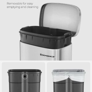 SONGMICS Acél szemetes pedállal, műanyag belső vödör, lassan záródó fedél, 30L, 35x30x63cm, ezüst