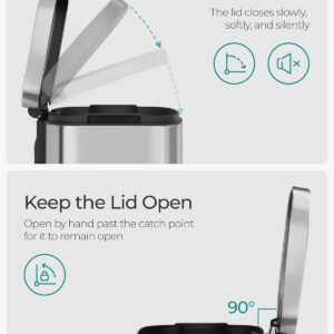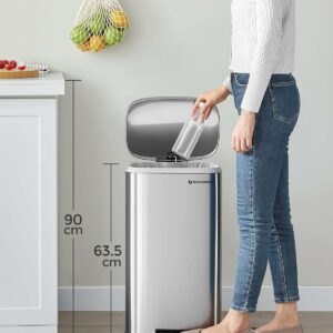 SONGMICS Acél szemetes pedállal, műanyag belső vödör, lassan záródó fedél, 30L, 35x30x63cm, ezüst termékről 1 értékelés