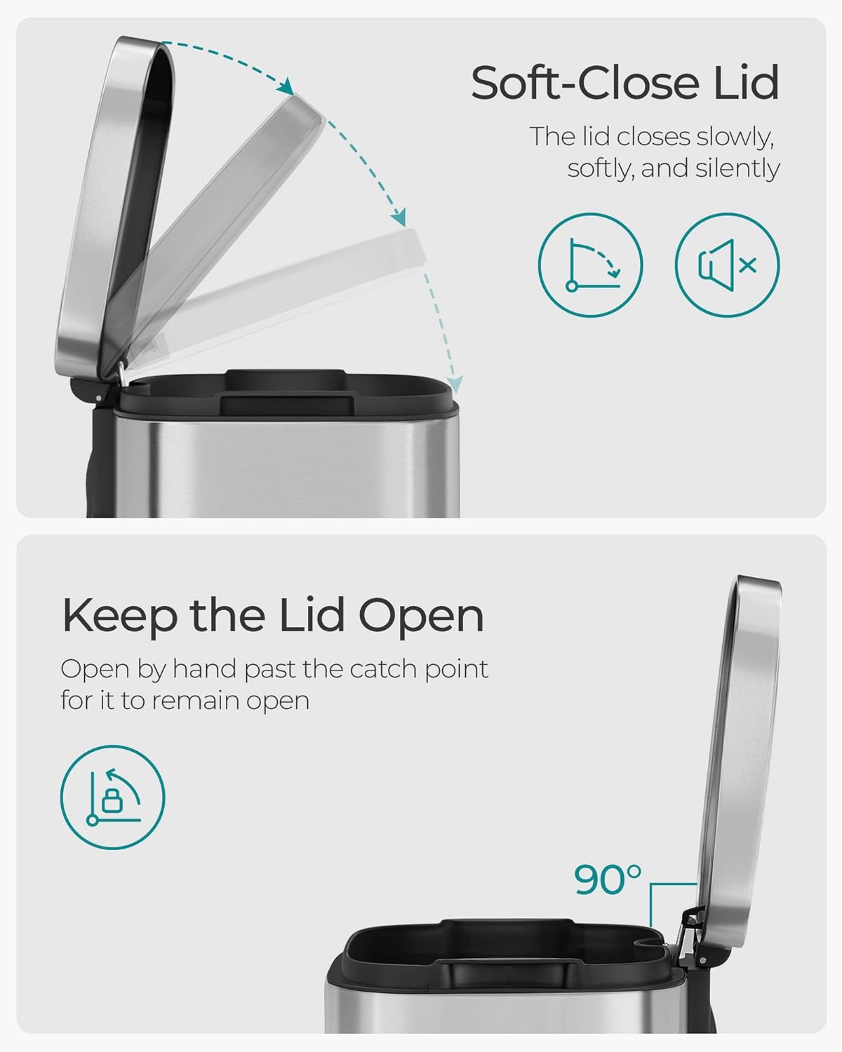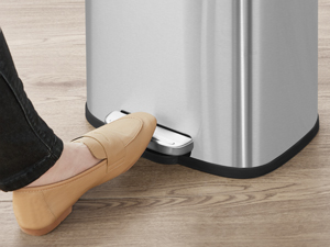 Ennek a pedálos szemetesnek van egy fedele, amely lassan és csendesen záródik. A szivárgásmentes fedéltömítés megakadályozza a szagok terjedését.