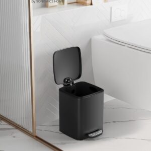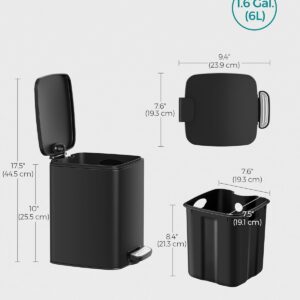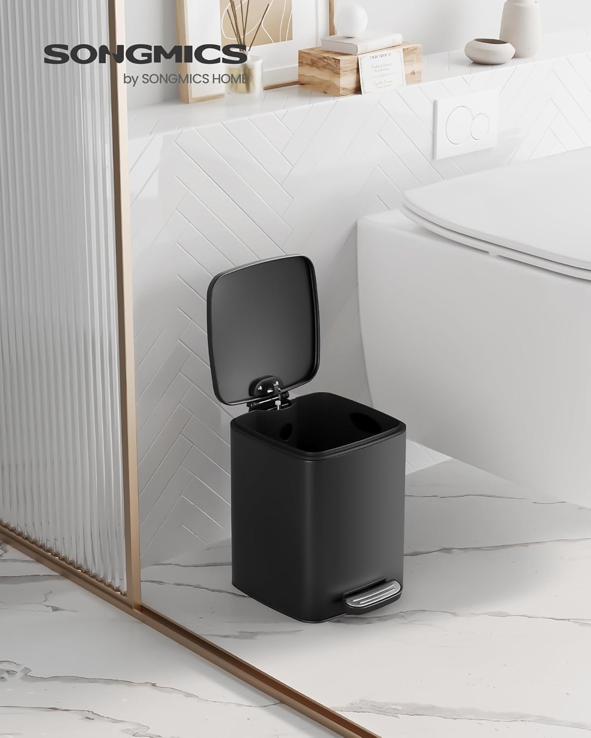 Solutie de economisire a spatiului: Cu un profil compact care masoara 9,4 x 7,6 x 10 centimetri (L x l x i), acest cos de gunoi de baie de 6L se potriveste perfect in spatii mici si ofera o capacitate mare, ocupand in acelasi timp un spatiu minim pe podea