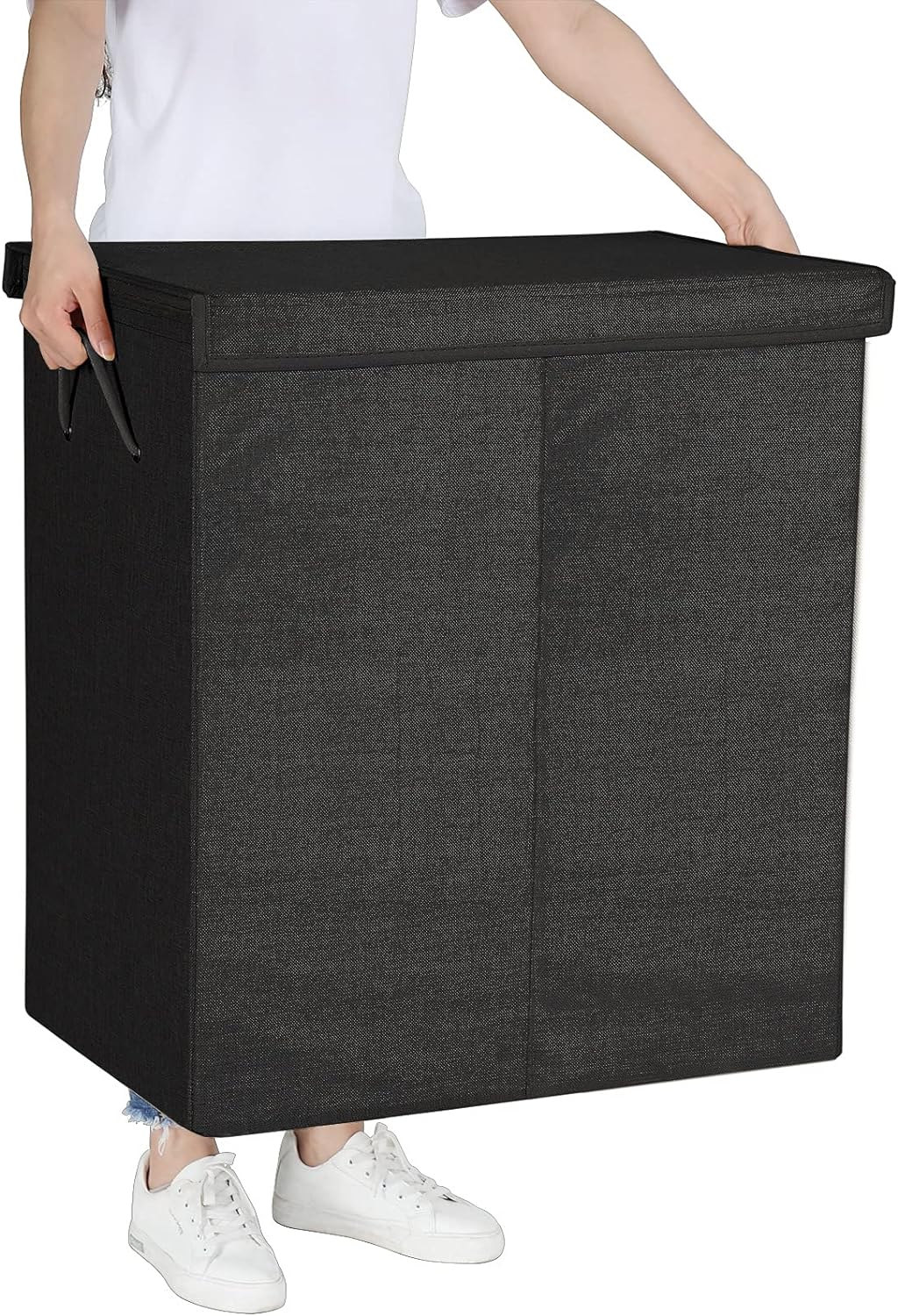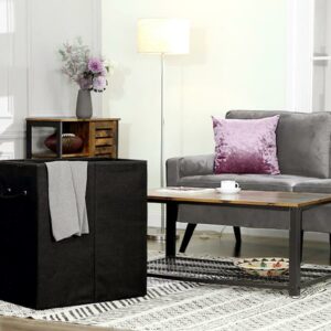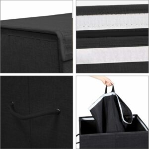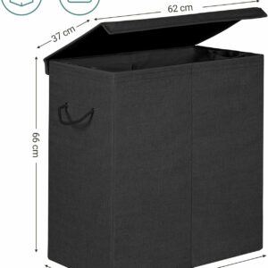 SONGMICS Textil szennyeskosár, összecsukható, 2 rekeszes, kivehető zacskók, 142L, 60x36x66cm, fekete