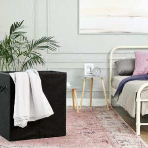 Használaton kívül a szennyeskosár összecsukható, hogy helyet takarítson meg. Az oldalsó pamut fogantyúknak köszönhetően könnyen hordozható.