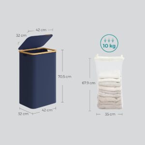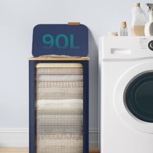 Tágas Ez a 90 literes, 42 x 32 x 70,5 cm méretű szennyeskosár elegendő helyet biztosít egy hétig egy személy szennyesének, és leegyszerűsíti a mosási rutint.