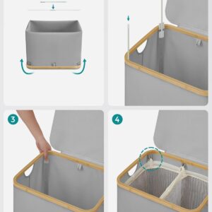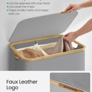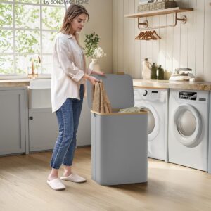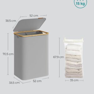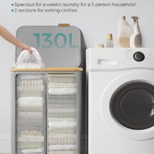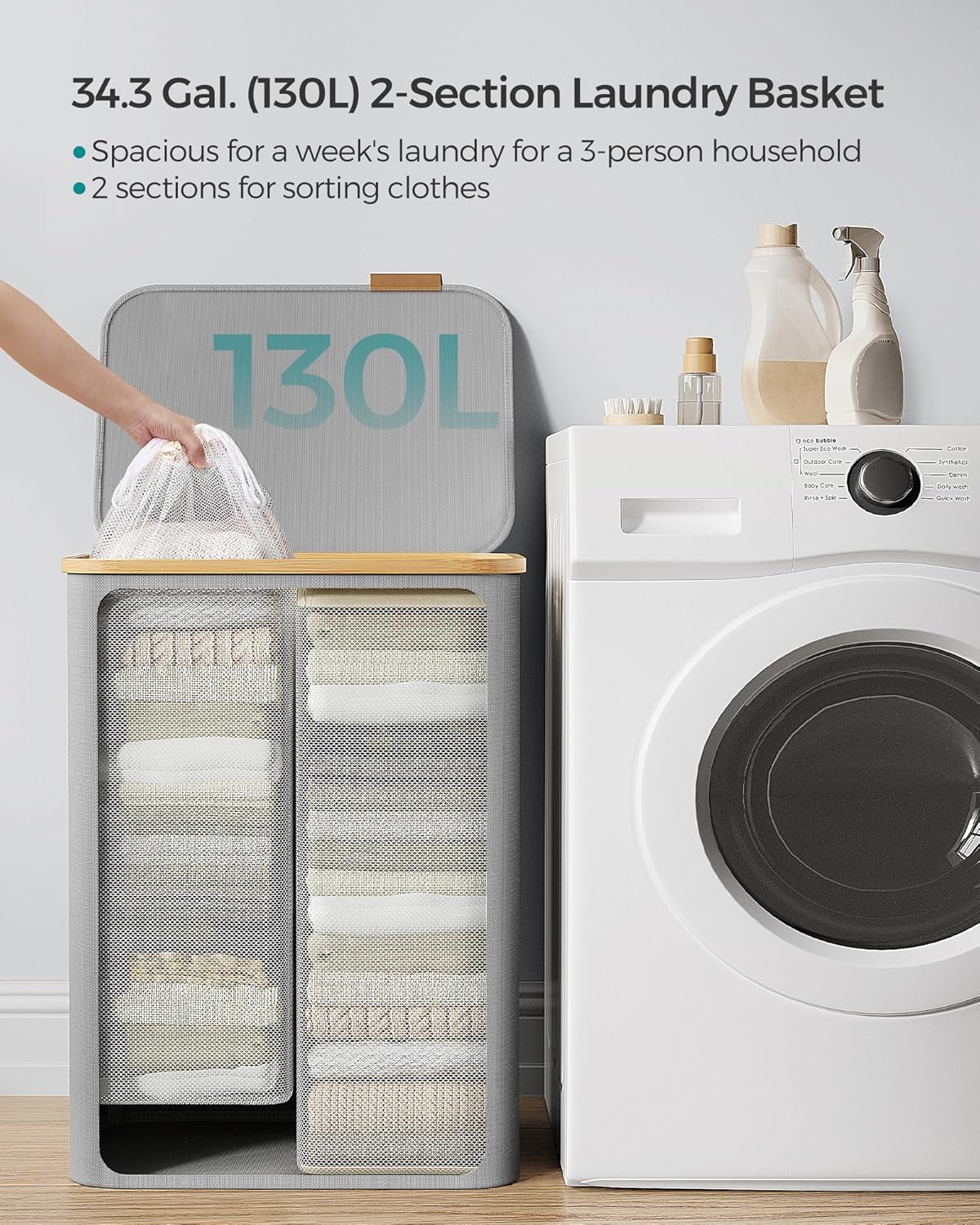 2 tágas rekesz Ez a 130 literes, 52 x 38,5 x 70,5 cm-es és 2 rekeszes szennyeskosár tökéletes a 3 fős háztartás szennyes válogatására és a mosási rutin leegyszerűsítésére.