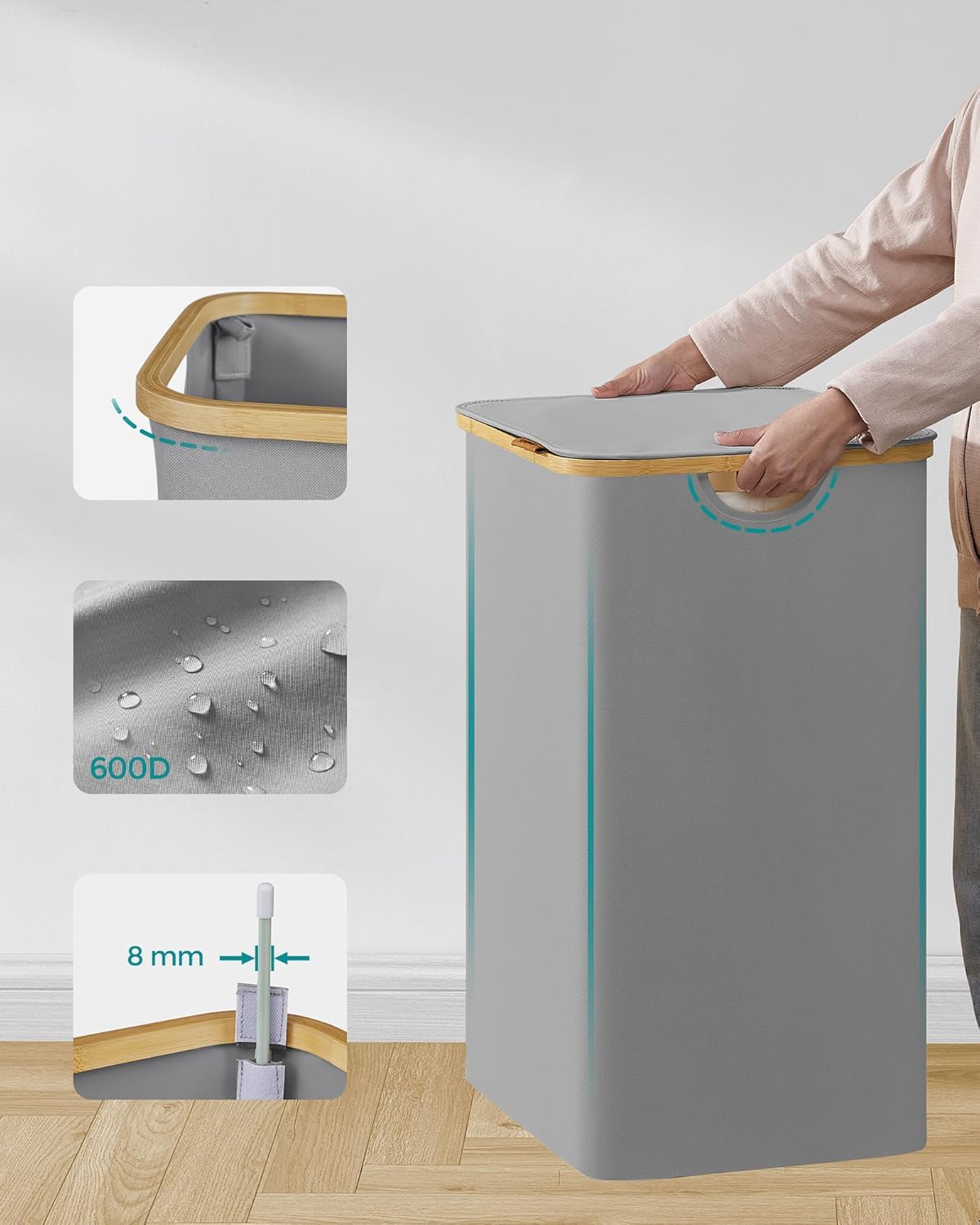 Tartós és robusztus A szennyeskosár vastagított Oxford 600D anyagból készült, vízlepergető, szakadásálló és könnyen tisztítható. Belső szerkezetét üvegszálas rudak támasztják alá a nagyobb stabilitás érdekében