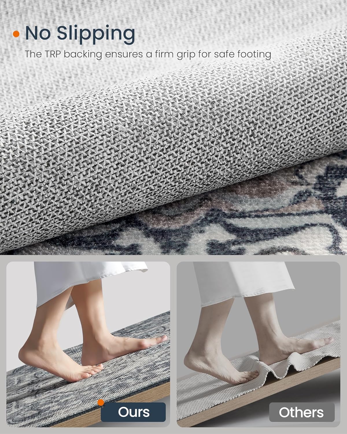 SONGMICS Csúszásgátló dekoratív szőnyeg, vintage stílusú, mosógépben mosható, 120×170 cm, szürke
