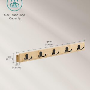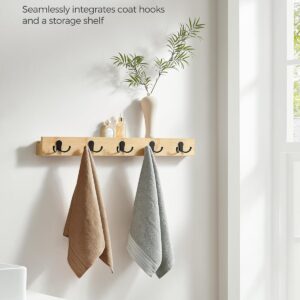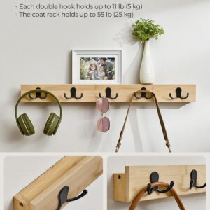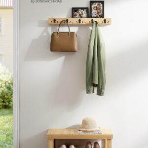SONGMICS fali akasztó előszobába vagy fürdőszobába, 5 db dupla kampó, 5x70x7 cm, natúr barna