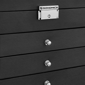 SONGMICS Ékszerdoboz 6 szintes, 5 fiókos, tükör, óratartó, zár, 16x26x32cm, fekete termékről 1 értékelés