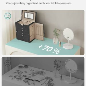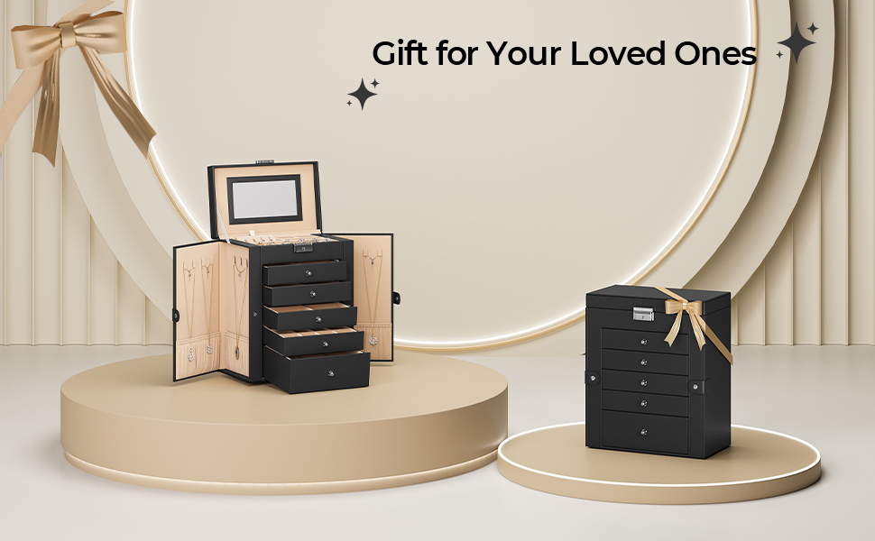 Belső tükörrel és zárral: Az ékszerdoboz belsejében egy tükör található, amely lehetővé teszi a smink felvitelét és a megjelenés egyszerű ellenőrzését, így értékes reggeli időt takaríthat meg; 2 kulccsal ellátott zárral rendelkezik, hogy az értékeket távol tartsa a gyerekektől.