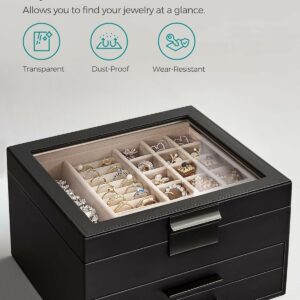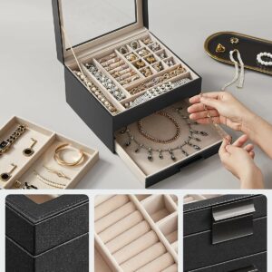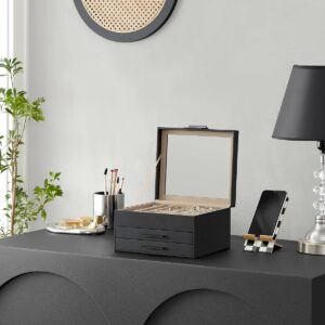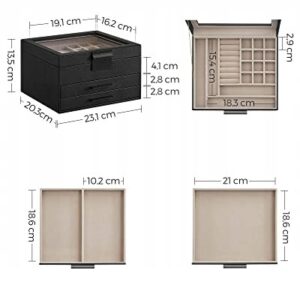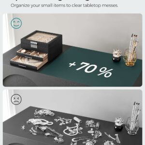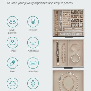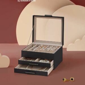 Pastrati toate bijuteriile dvs. organizate in aceasta cutie de bijuterii – piesele mici de bijuterii merg in diferitele sloturi ale stratului superior, iar bijuteriile mari merg in cele 2 sertare de jos