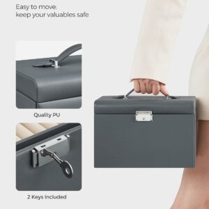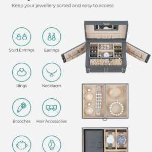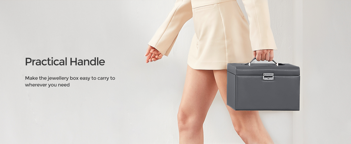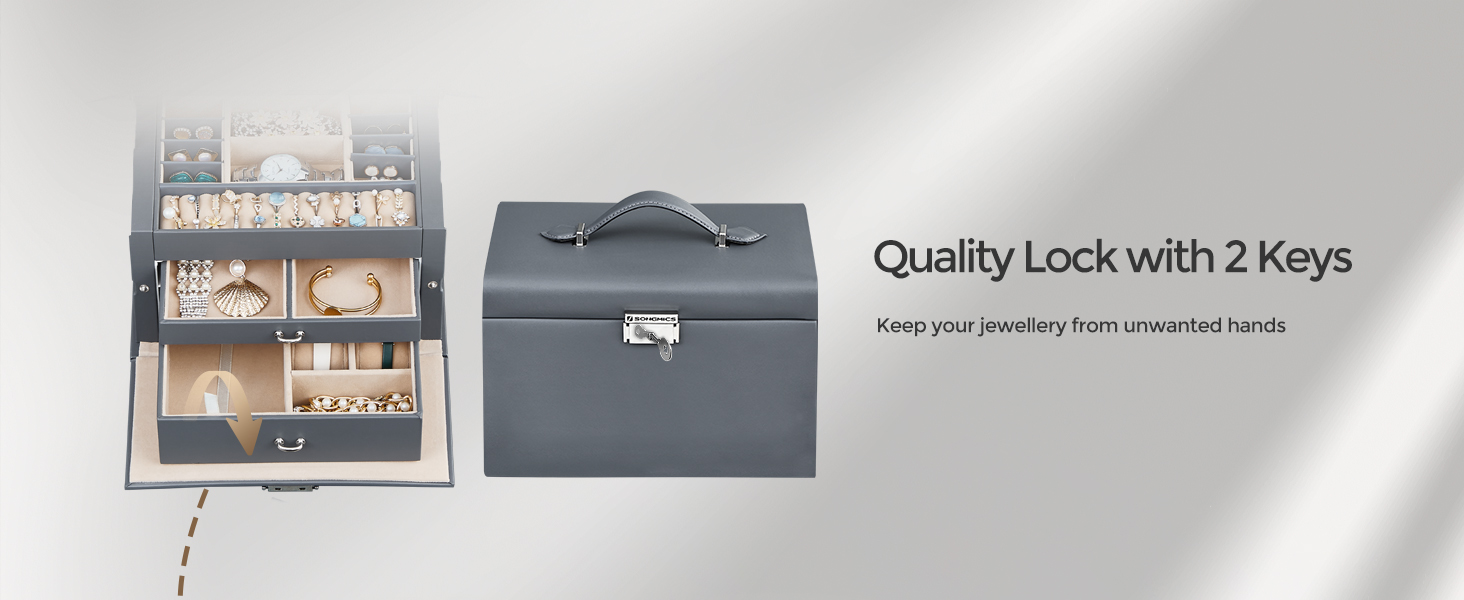 Lacat si maner practice: Aceasta cutie de bijuterii se incuie cu 2 chei pentru a va pastra obiectele de valoare in siguranta si la indemana; manerul de pe capac va permite sa transportati cu usurinta cutia de bijuterii oriunde doriti.