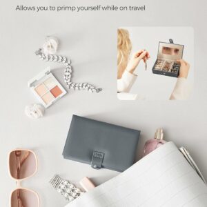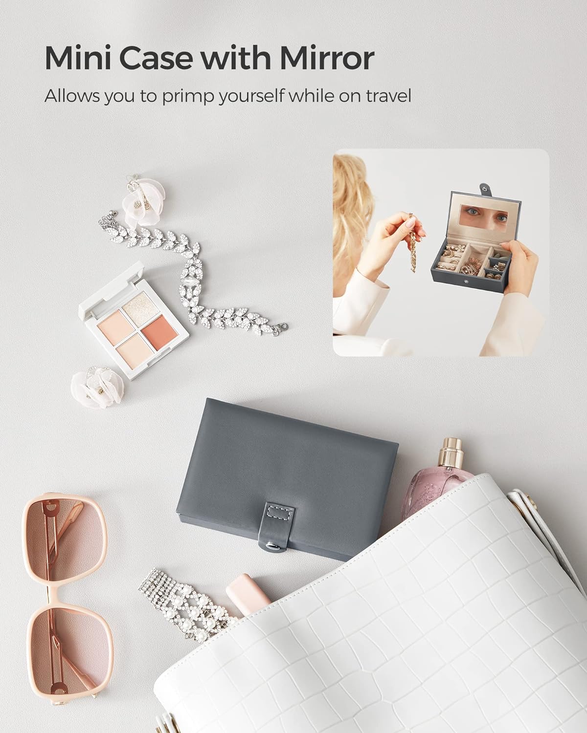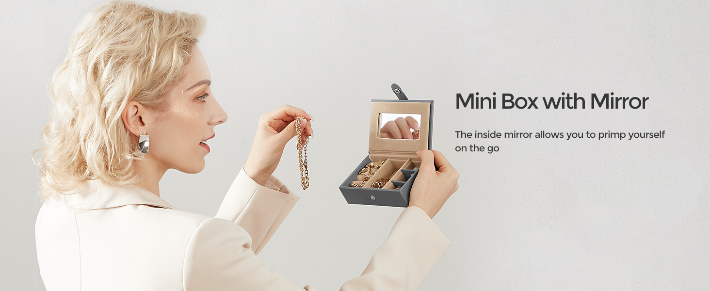 Mini husa de calatorie separata: Acest organizator de bijuterii vine cu o mini cutie de bijuterii de calatorie, care este perfecta pentru a aduce cateva piese in calatorie. Carcasa mini are si o oglinda.