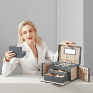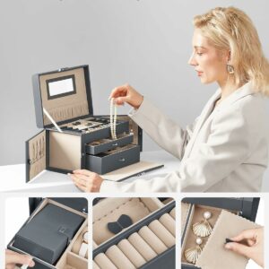 Calitate: Suprafete netede din PU, corp solid din MDF, captuseala moale din catifea, cusaturi ingrijite – aceasta cutie de bijuterii care se poate incuia este solida si durabila pentru a va insoti pentru anii urmatori.