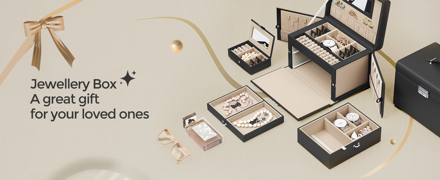 Calitate: Suprafete netede din PU, corp solid din MDF, captuseala moale din catifea, cusaturi ingrijite – aceasta cutie de bijuterii care se poate incuia este solida si durabila pentru a va insoti pentru anii urmatori.