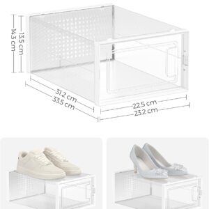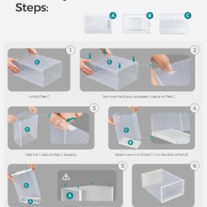 Ha a dobozokat rendezetten szeretné tárolni, a megfelelő kialakítás gyerekjátékká teszi az egymásra rakást; a szellőzőnyílások lehetővé teszik a cipő lélegzését. Egyszerűen nyomja össze az elejét, a hátát és a testet, és máris megkapja ezeket a 33,5 x 23,2 x 14,3 cm-es belső méretű cipőtartókat.