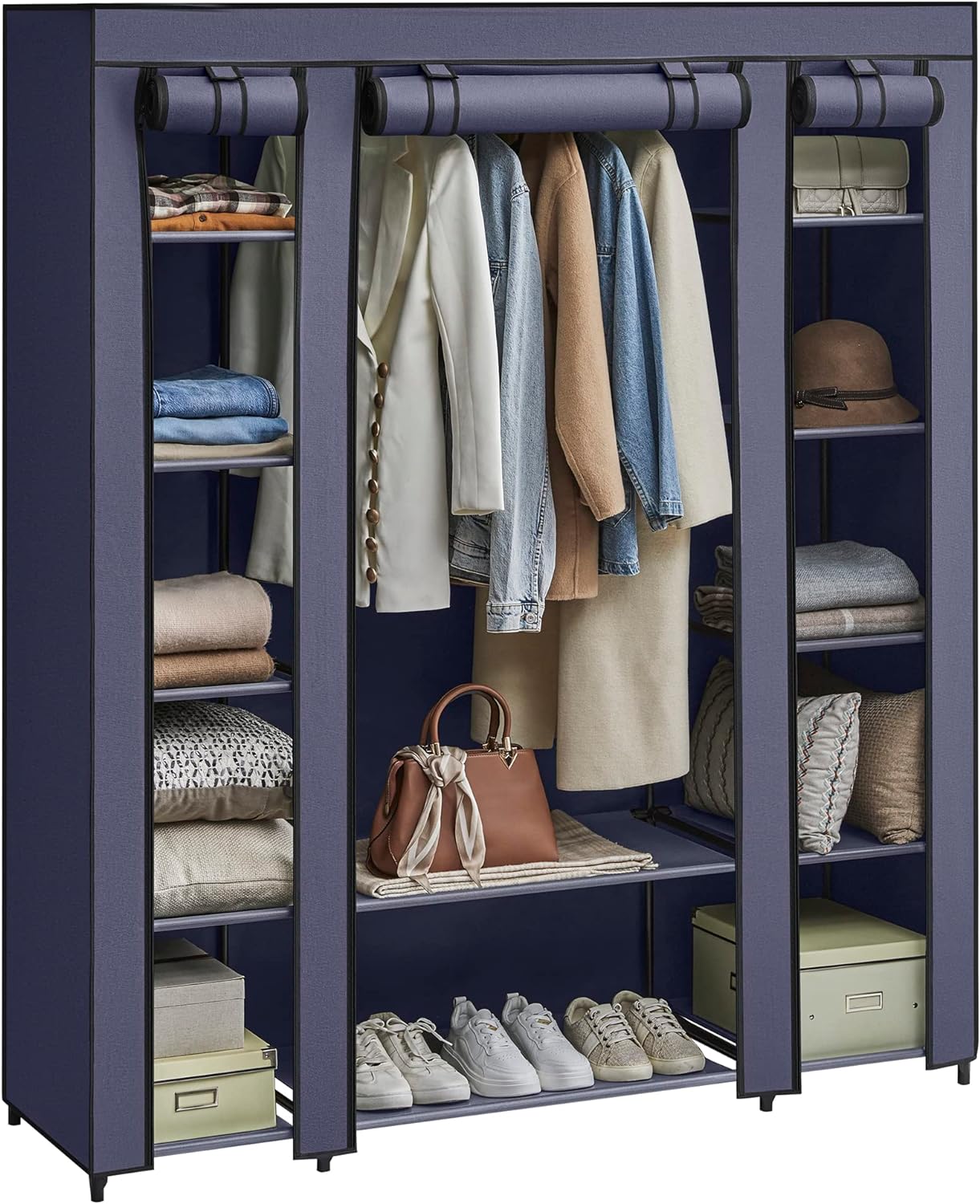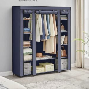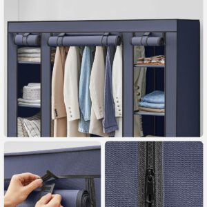 SONGMICS Textil szekrény, hordozható szekrény, polcokkal és függesztősínnel, 150x45x175cm, kék