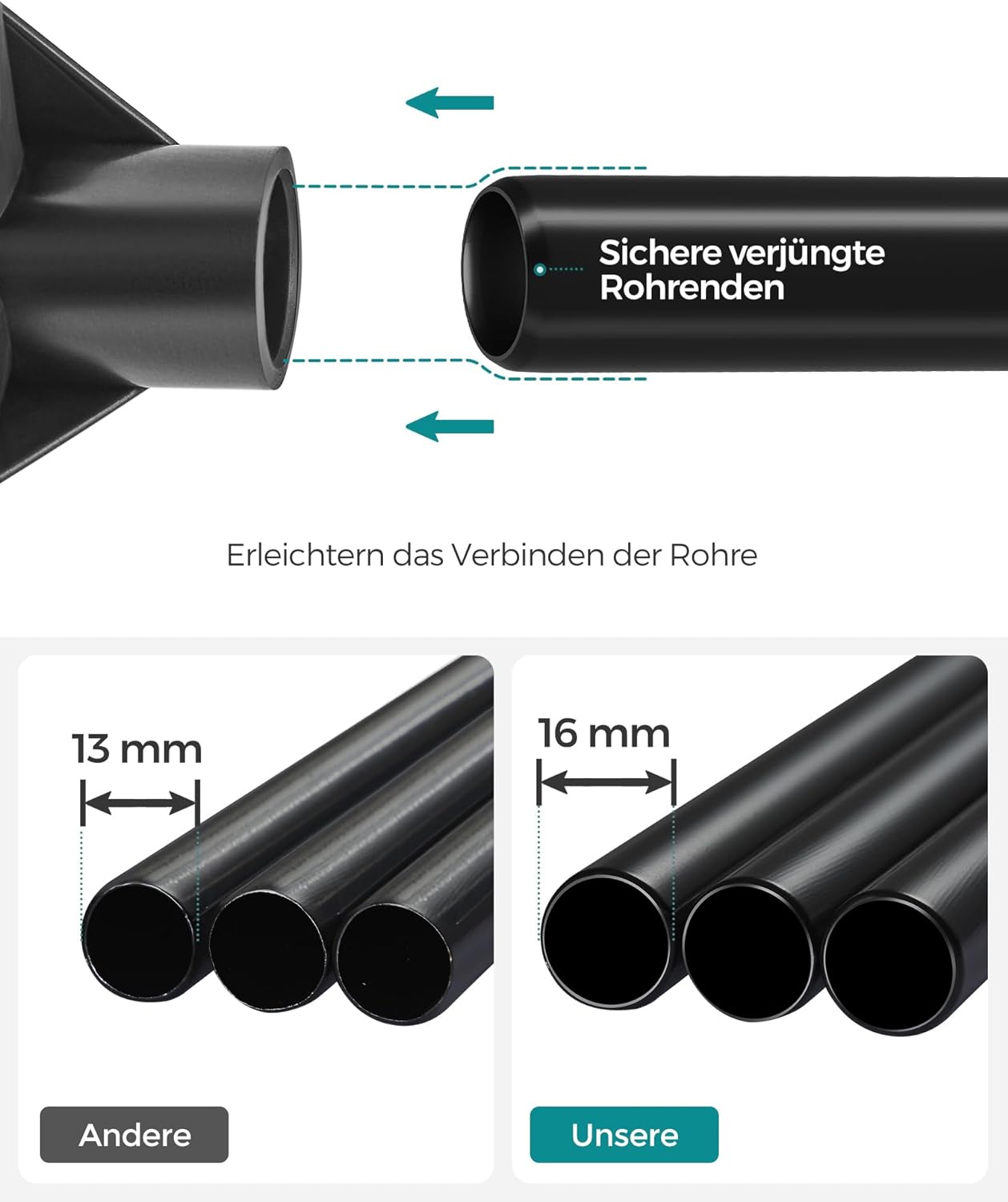 Könnyű összeszerelés: Világos utasítások, feliratozott alkatrészek – A szekrény könnyen összeszerelhető, nincs szükség szerszámra. Kövesse az utasításokat, és helyezze be a csöveket a csatlakozókba. Csere csatlakozók mellékelve.