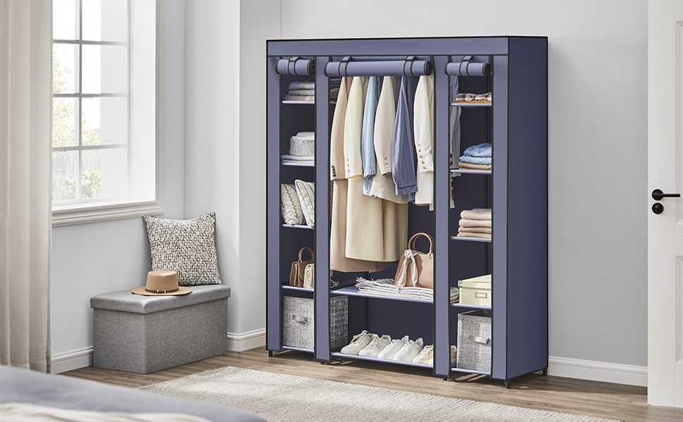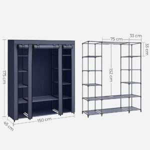 „SONGMICS Textil szekrény, hordozható szekrény, polcokkal és függesztősínnel, 150x45x175cm, kék” értékelése elsőként