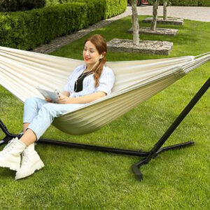 Puteti folosi acest hamac cu suport in propria gradina sau il puteti da jos si il puteti lua singur pentru camping.