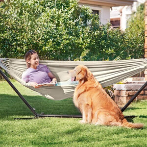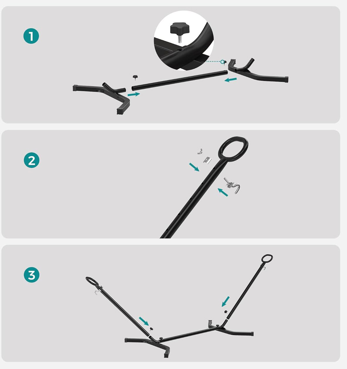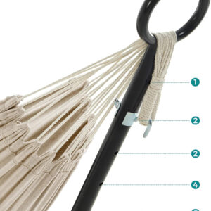 Inaltime reglabila: Exista 5 gauri pe fiecare parte a barei de sustinere, astfel incat puteti regla inaltimea hamacului dupa cum doriti