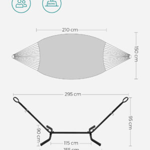 - Dimensiune hamac: 210 x 150 cm (L x l).
