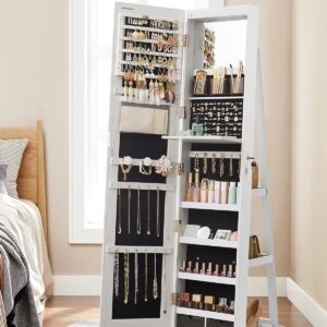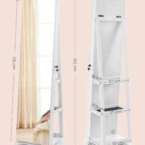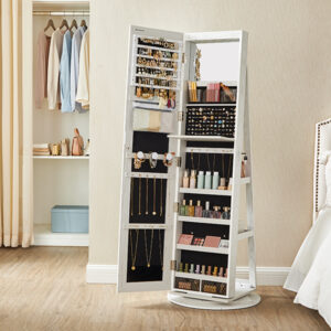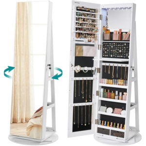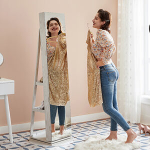 Gyönyörű tükör: Ez az ékszerszekrény 37 x 155 cm-es keret nélküli egész alakos tükörrel rendelkezik, így a tükörben tetőtől talpig megcsodálhatja a viseletét. Kezdjen minden napot egy gyönyörű külsővel!