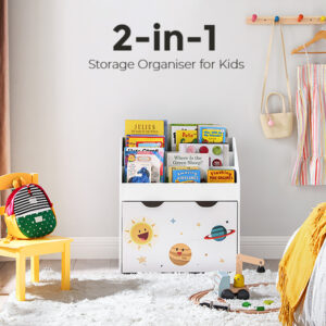 Cu instructiuni clare, acest organizator de depozitare va juca un rol cheie in camera copiilor sau in camera de joaca in cateva minute, iar copilul dvs. va va explica cu bucurie cum sa organizati jucariile si cartile.