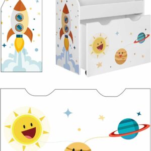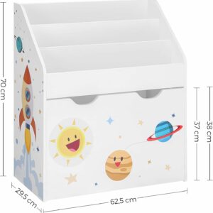 SONGMICS Organizator de jucarii si carti pentru copii, multifunctional, cutie detasabila cu roti, 63x30x70cm, alb